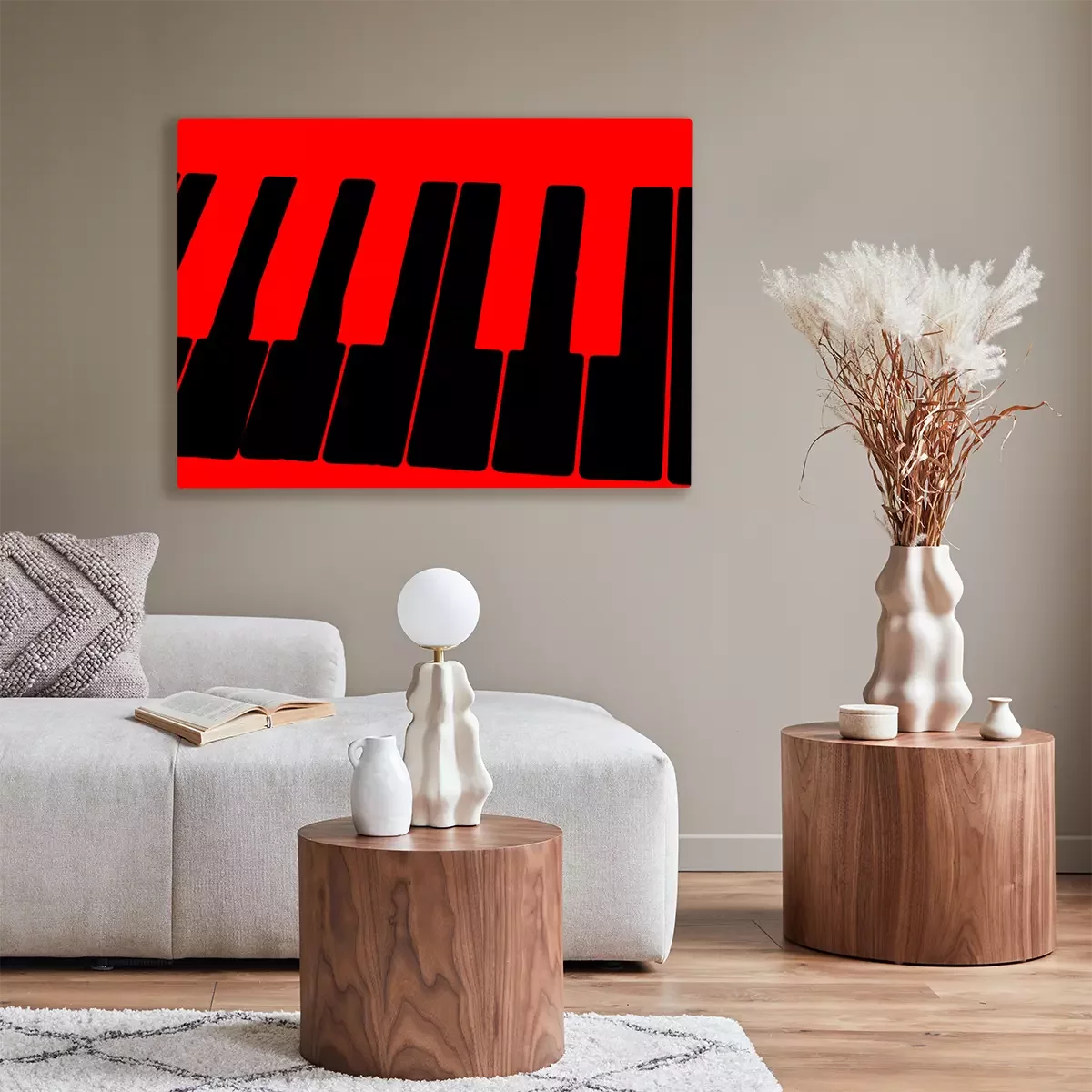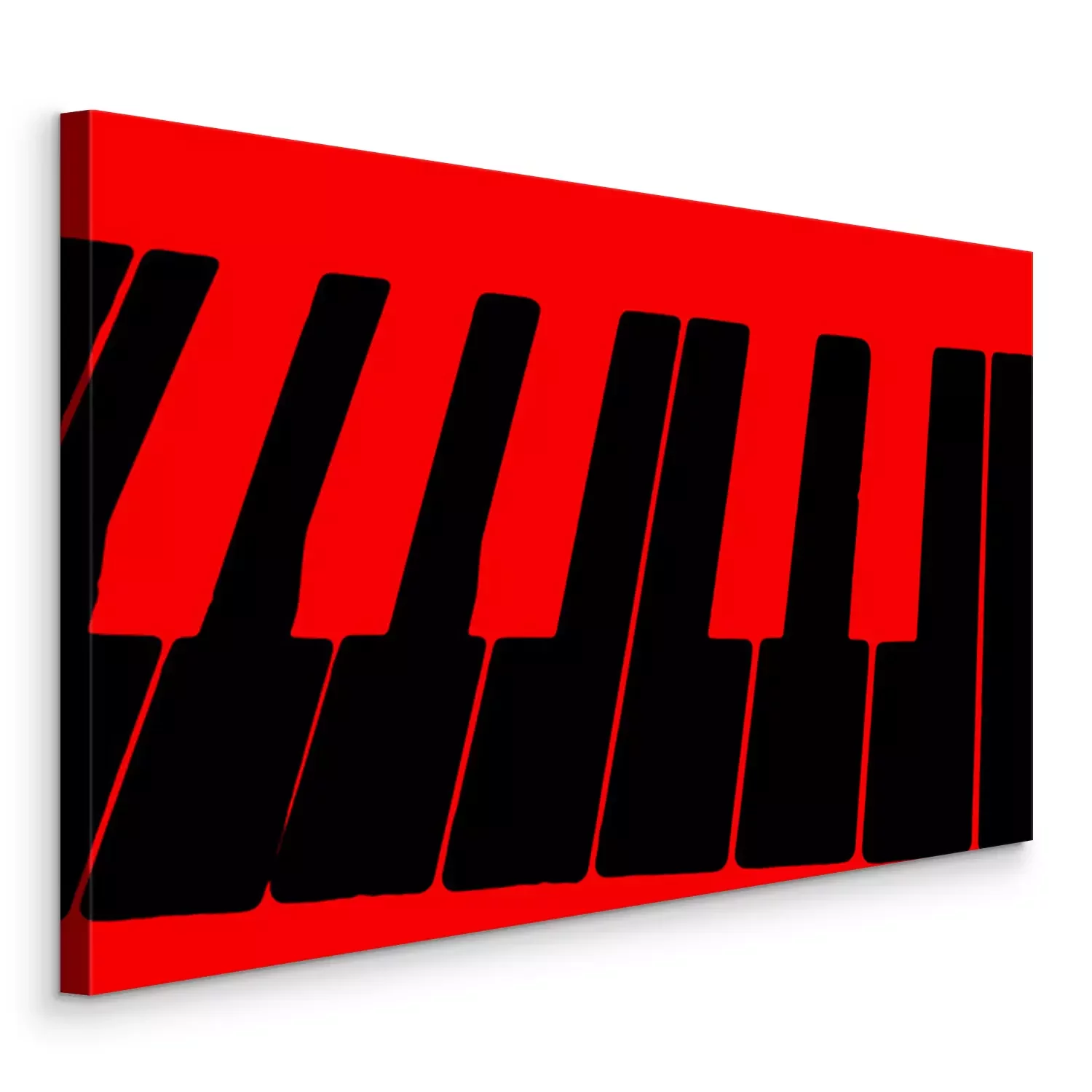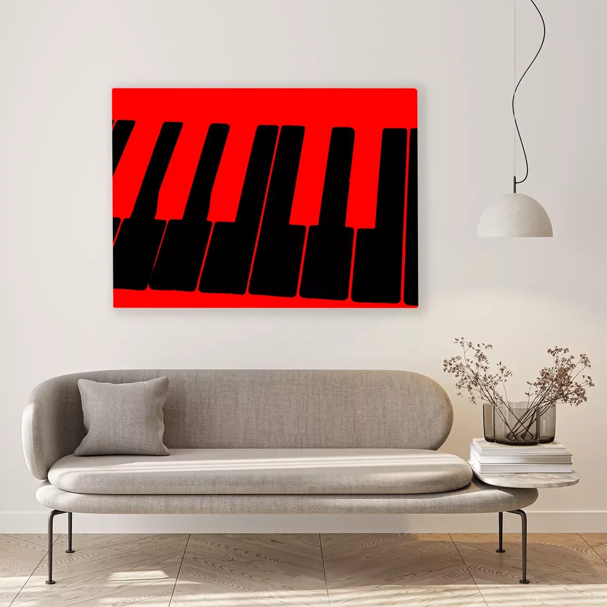 Canvas The schematic image of the keys of a musical instrument on a bright red background.