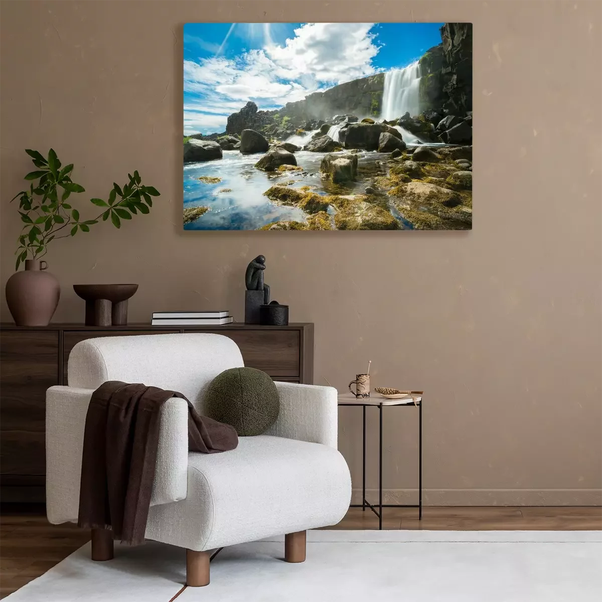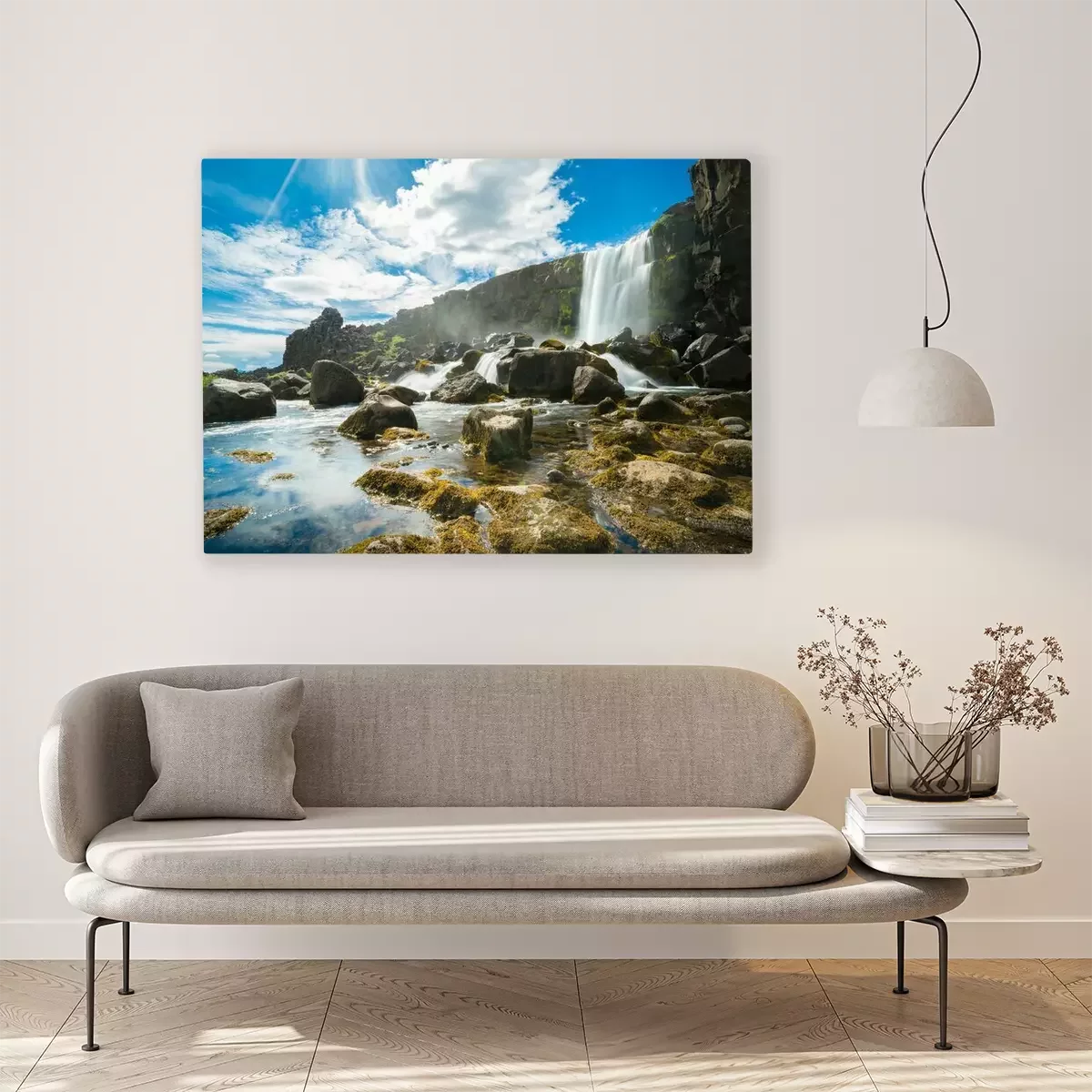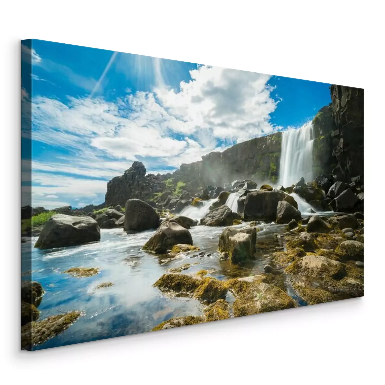 Canvas: Thingvellir National Park rift valley, waterval in de Mid-Atlantic Rift, Pingvellir, IJsland