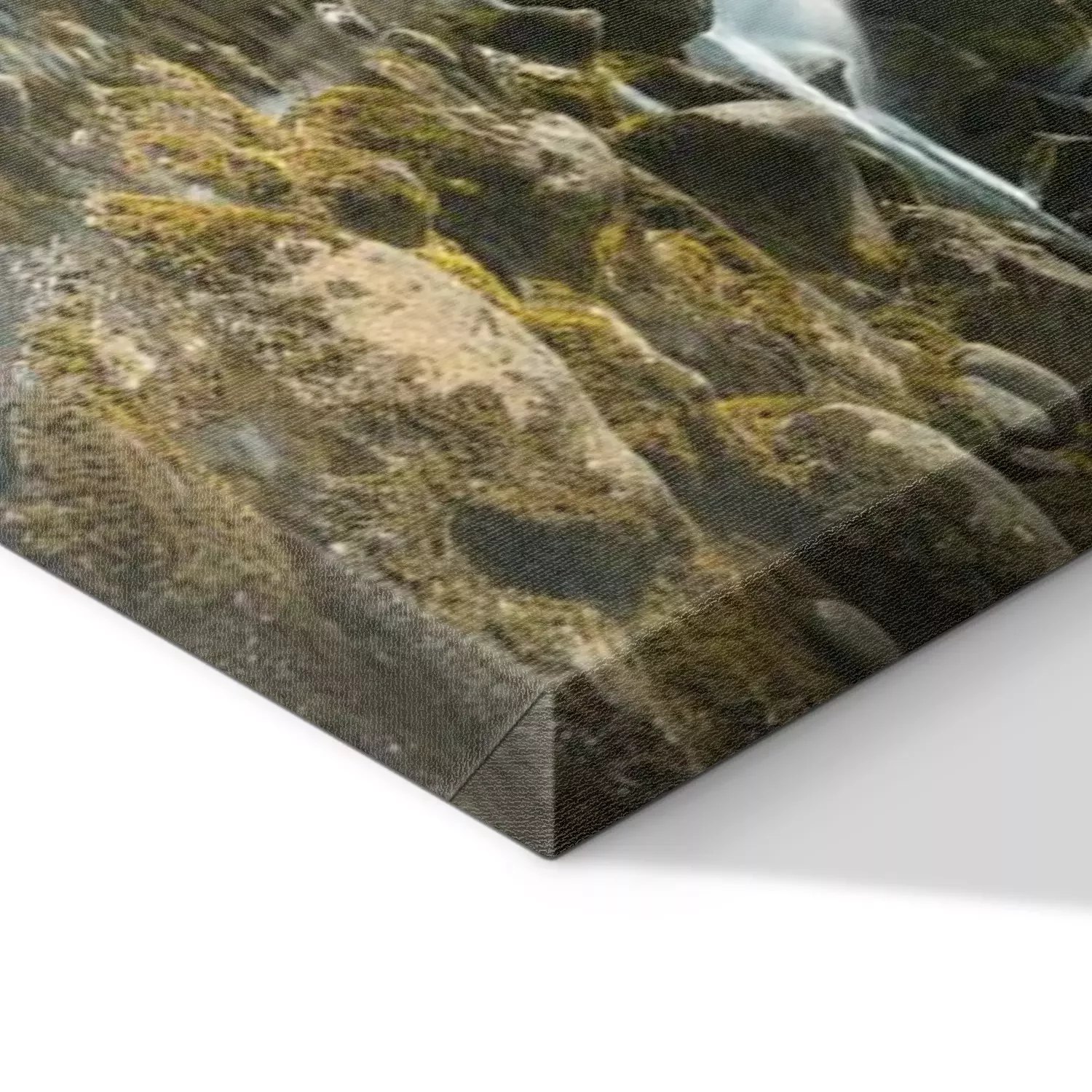 De print wordt aangebracht op hoogwaardig canvas dat op een schildersweefgetouw (spieraam) wordt gespannen. Omdat de print de zijranden bedekt, hoeft het ontwerp niet met een extra kader te worden omlijst. Wij raden ook composities aan die uit meerdere foto's bestaan en zo een coherente compositie vormen.