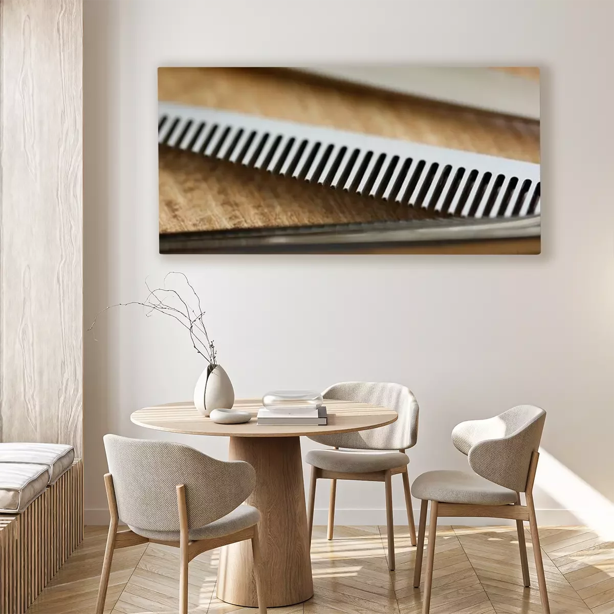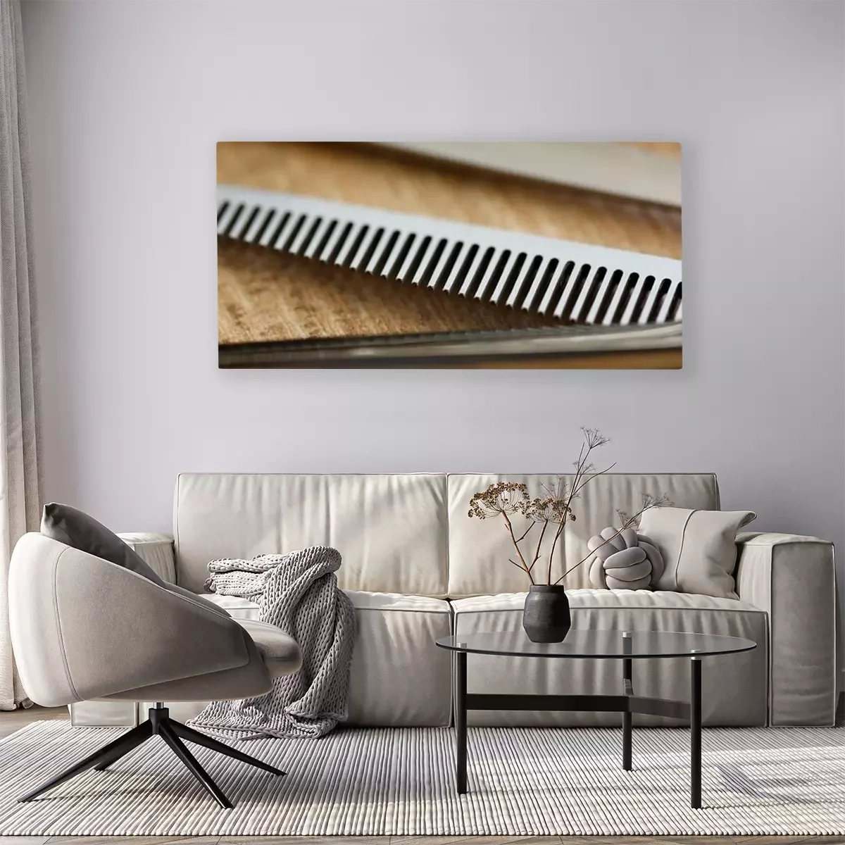 De print wordt aangebracht op hoogwaardig canvas dat op een schildersweefgetouw (spieraam) wordt gespannen. Omdat de print de zijranden bedekt, hoeft het ontwerp niet met een extra kader te worden omlijst. Wij raden ook composities aan die uit meerdere foto's bestaan en zo een coherente compositie vormen.