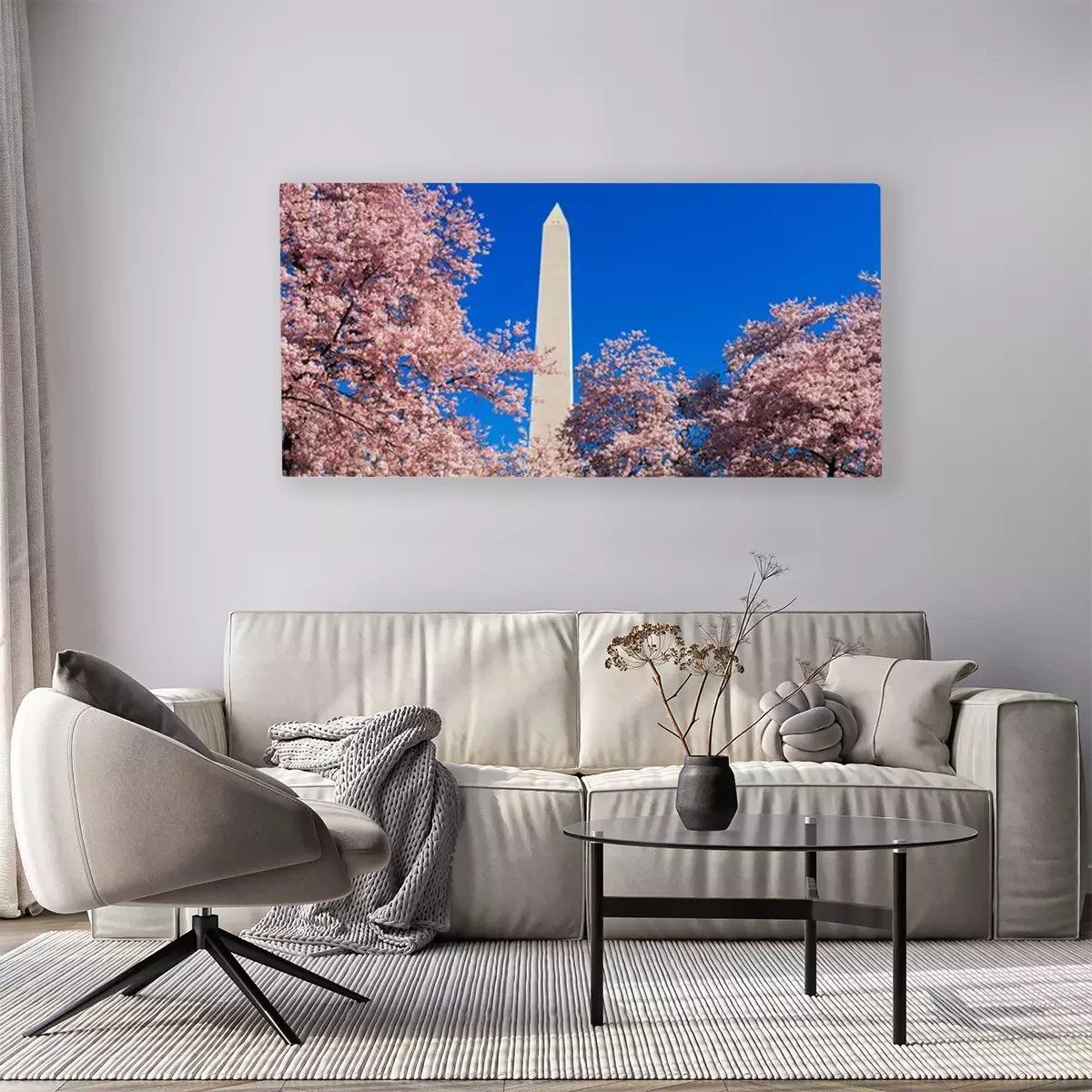 Canvas: This is the Washington Monument set at the center amongst the spring cherry blossoms.