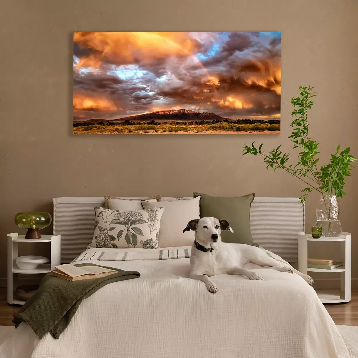 De print wordt aangebracht op hoogwaardig canvas dat op een schildersweefgetouw (spieraam) wordt gespannen. Omdat de print de zijranden bedekt, hoeft het ontwerp niet met een extra kader te worden omlijst. Wij raden ook composities aan die uit meerdere foto's bestaan en zo een coherente compositie vormen.