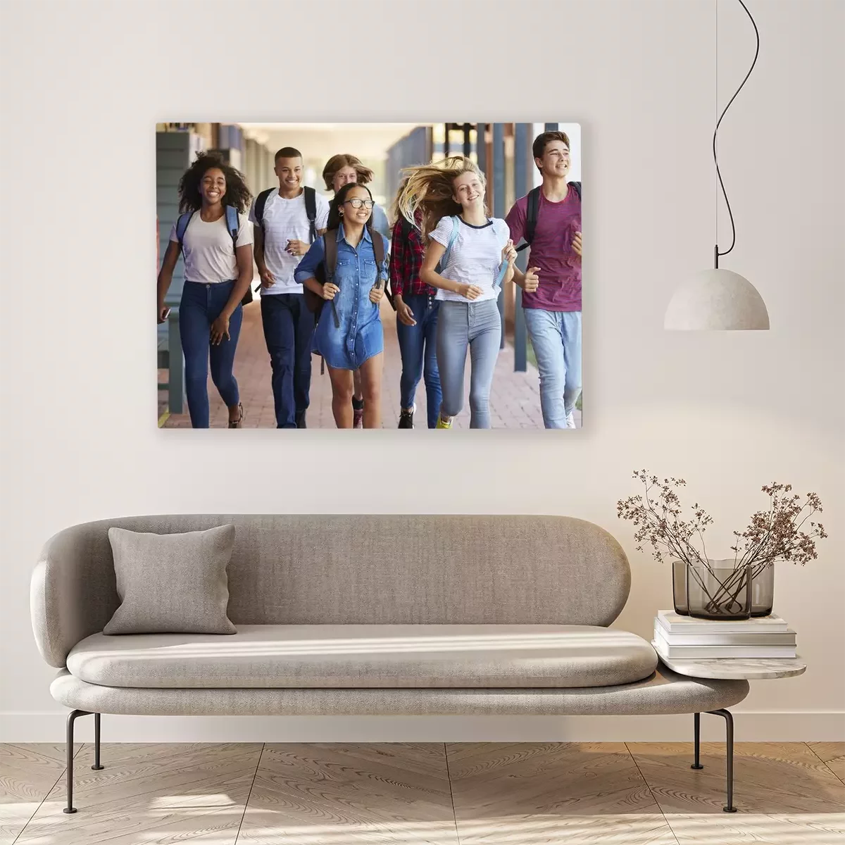 De print wordt aangebracht op hoogwaardig canvas dat op een schildersweefgetouw (spieraam) wordt gespannen. Omdat de print de zijranden bedekt, hoeft het ontwerp niet met een extra kader te worden omlijst. Wij raden ook composities aan die uit meerdere foto's bestaan en zo een coherente compositie vormen.