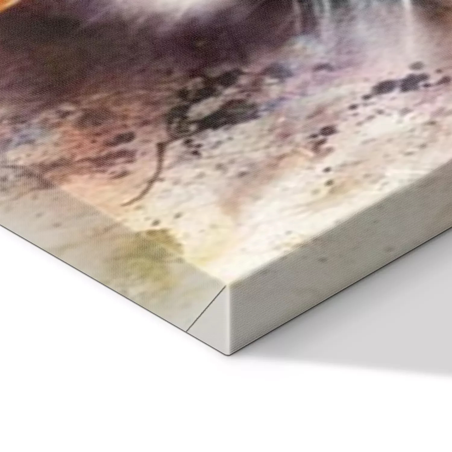 De print wordt aangebracht op hoogwaardig canvas dat op een schildersweefgetouw (spieraam) wordt gespannen. Omdat de print de zijranden bedekt, hoeft het ontwerp niet met een extra kader te worden omlijst. Wij raden ook composities aan die uit meerdere foto's bestaan en zo een coherente compositie vormen.