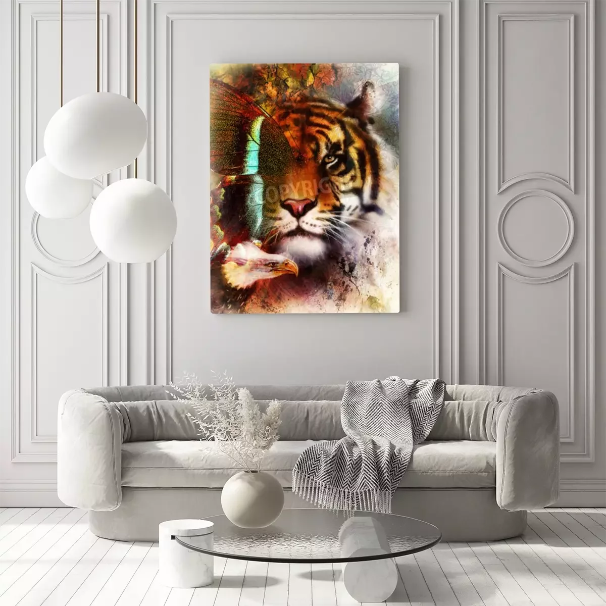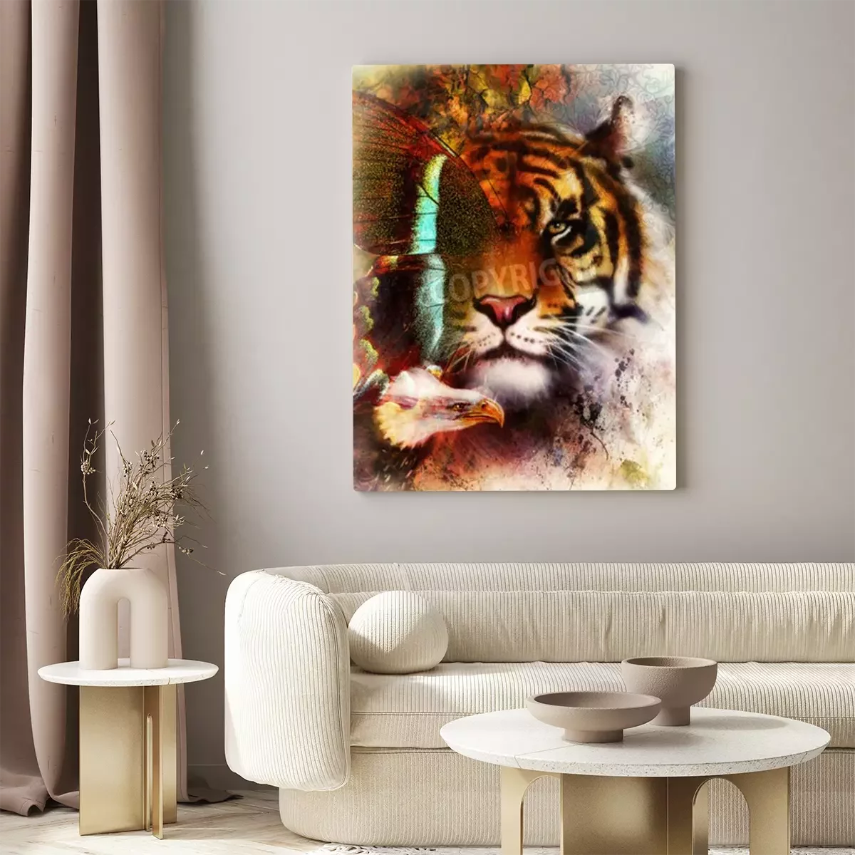 Canvas Tijger, vlinder en adelaar