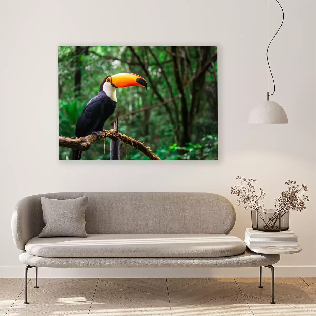 Canvas: Toekan op een tak in de jungle