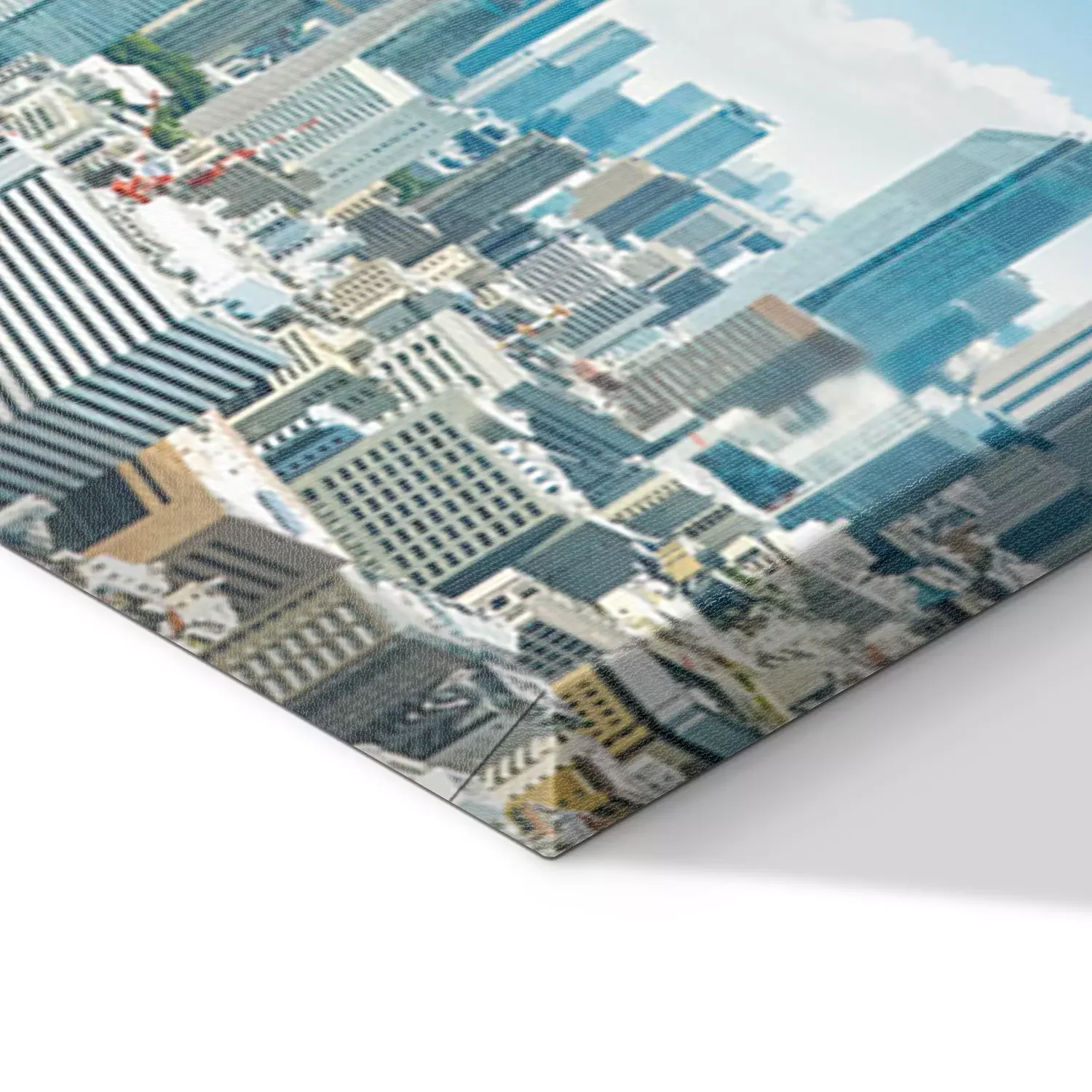 De print wordt aangebracht op hoogwaardig canvas dat op een schildersweefgetouw (spieraam) wordt gespannen. Omdat de print de zijranden bedekt, hoeft het ontwerp niet met een extra kader te worden omlijst. Wij raden ook composities aan die uit meerdere foto's bestaan en zo een coherente compositie vormen.