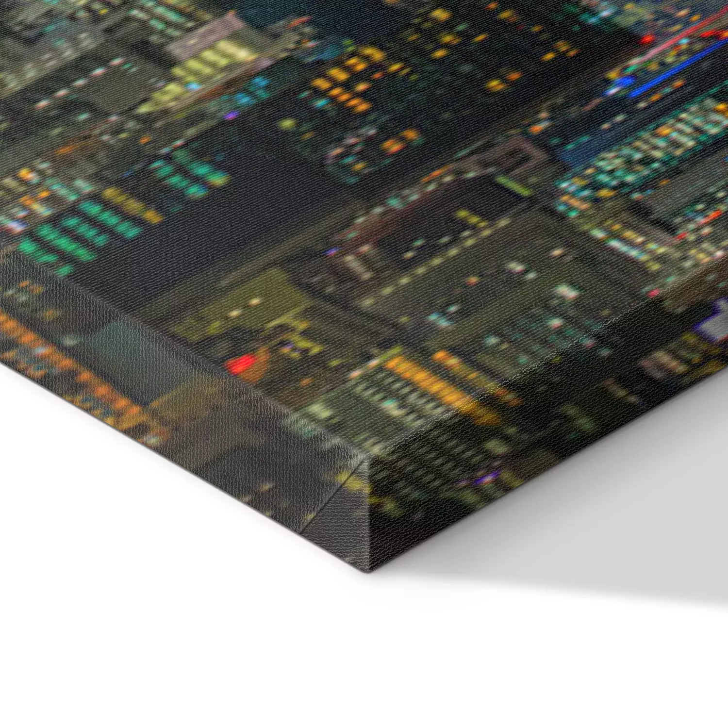 De print wordt aangebracht op hoogwaardig canvas dat op een schildersweefgetouw (spieraam) wordt gespannen. Omdat de print de zijranden bedekt, hoeft het ontwerp niet met een extra kader te worden omlijst. Wij raden ook composities aan die uit meerdere foto's bestaan en zo een coherente compositie vormen.