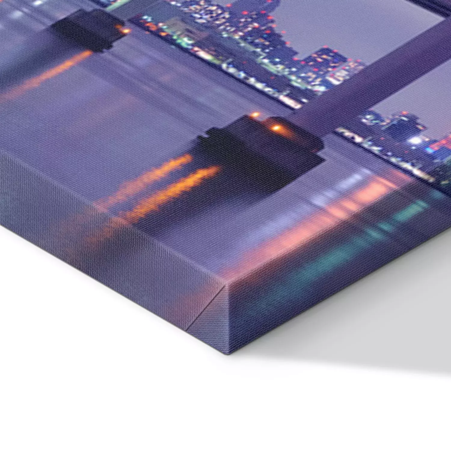De print wordt aangebracht op hoogwaardig canvas dat op een schildersweefgetouw (spieraam) wordt gespannen. Omdat de print de zijranden bedekt, hoeft het ontwerp niet met een extra kader te worden omlijst. Wij raden ook composities aan die uit meerdere foto's bestaan en zo een coherente compositie vormen.