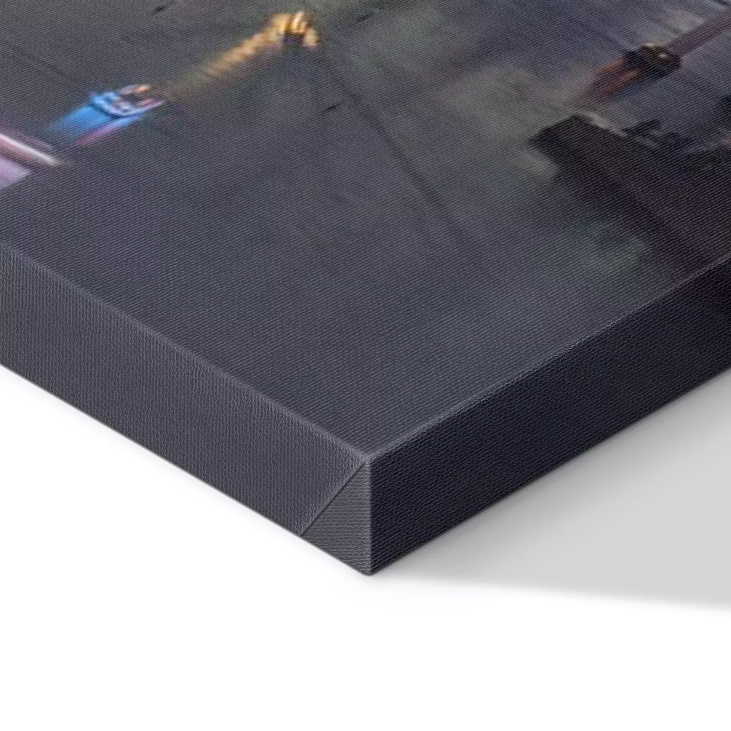 De print wordt aangebracht op hoogwaardig canvas dat op een schildersweefgetouw (spieraam) wordt gespannen. Omdat de print de zijranden bedekt, hoeft het ontwerp niet met een extra kader te worden omlijst. Wij raden ook composities aan die uit meerdere foto's bestaan en zo een coherente compositie vormen.