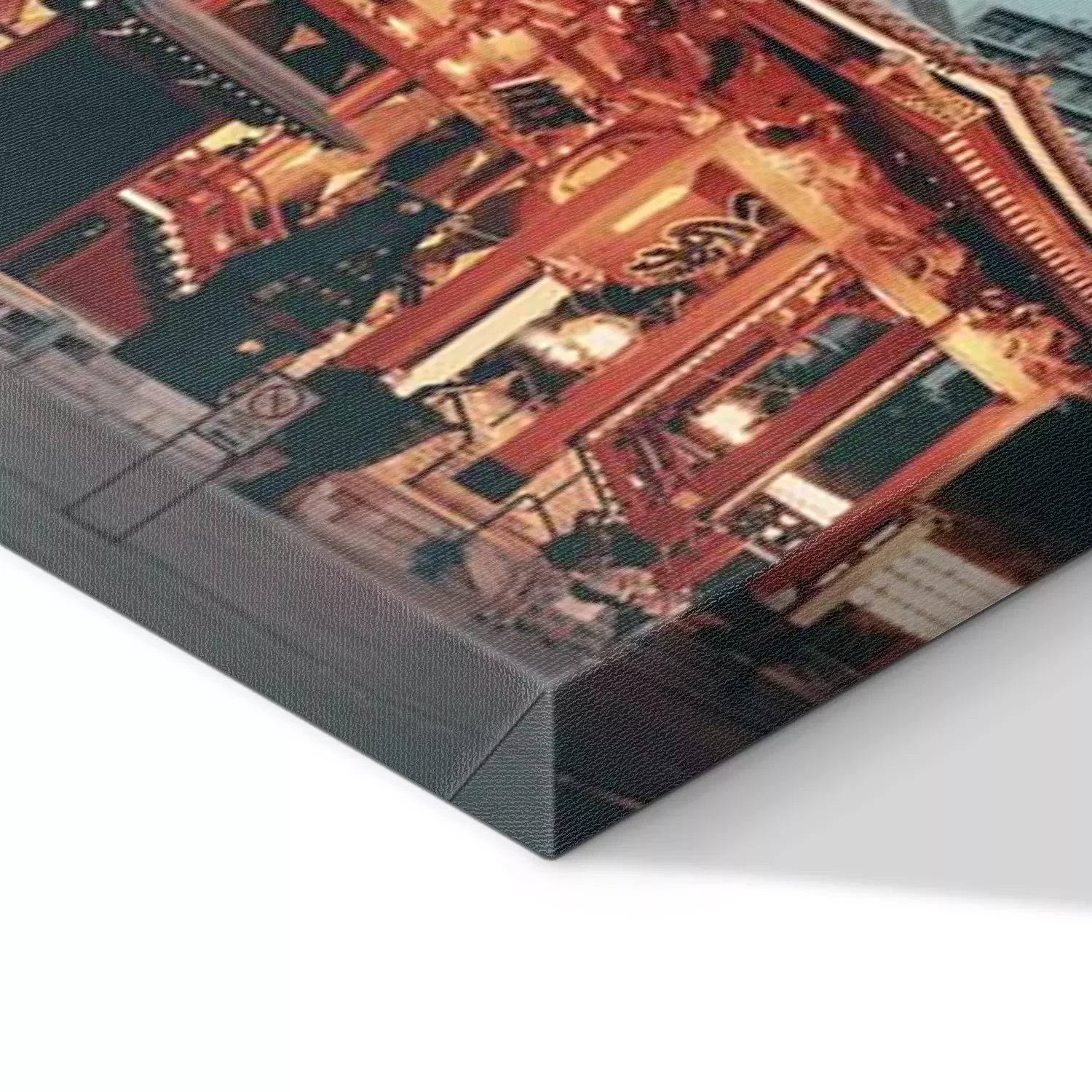 De print wordt aangebracht op hoogwaardig canvas dat op een schildersweefgetouw (spieraam) wordt gespannen. Omdat de print de zijranden bedekt, hoeft het ontwerp niet met een extra kader te worden omlijst. Wij raden ook composities aan die uit meerdere foto's bestaan en zo een coherente compositie vormen.
