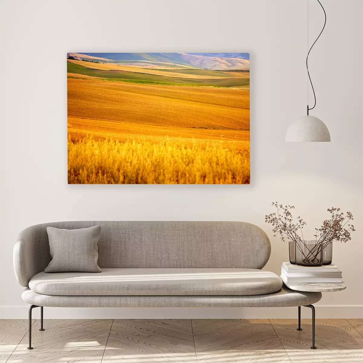De print wordt aangebracht op hoogwaardig canvas dat op een schildersweefgetouw (spieraam) wordt gespannen. Omdat de print de zijranden bedekt, hoeft het ontwerp niet met een extra kader te worden omlijst. Wij raden ook composities aan die uit meerdere foto's bestaan en zo een coherente compositie vormen.