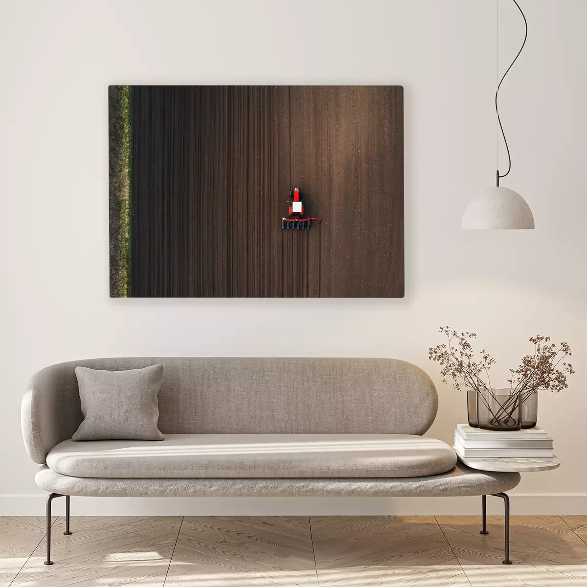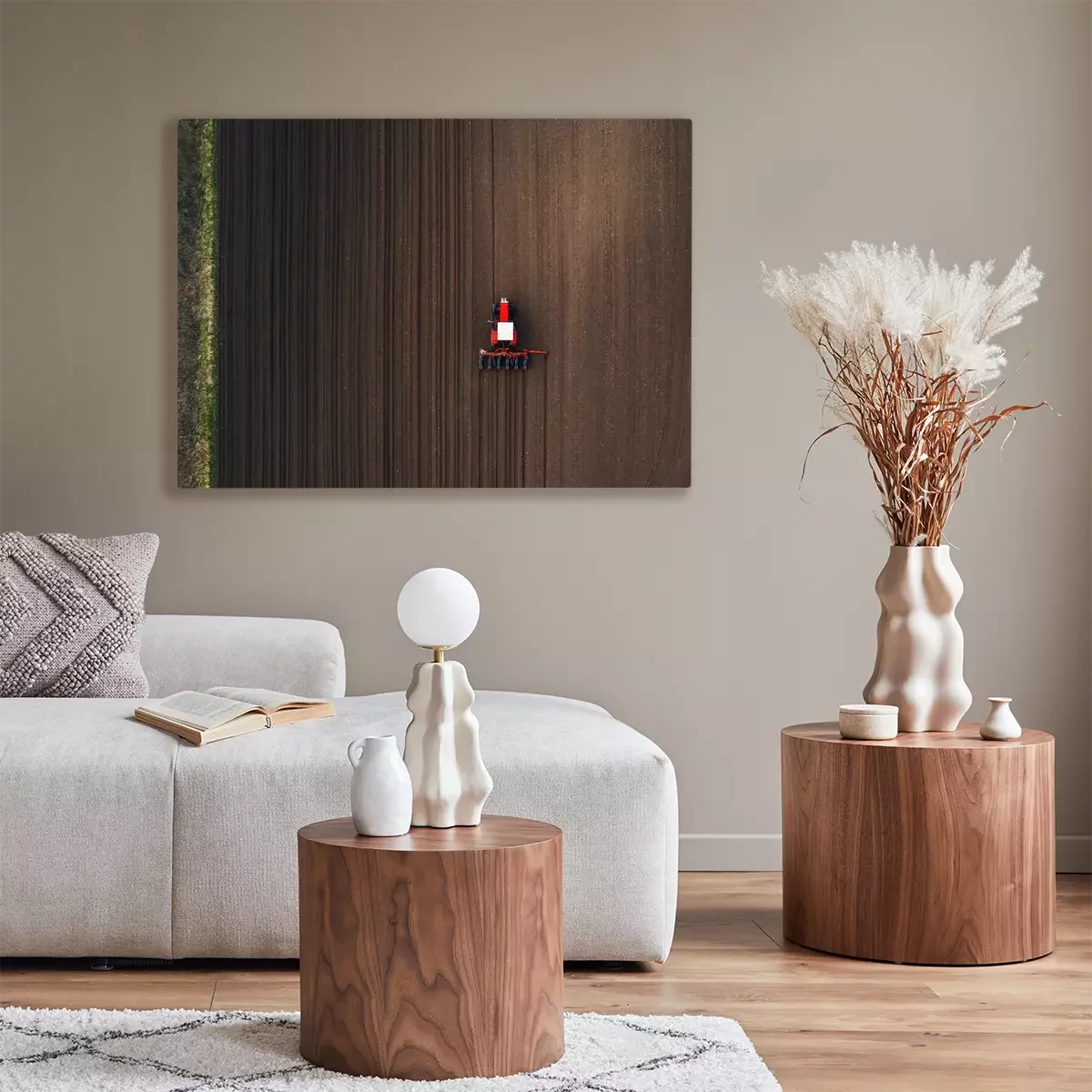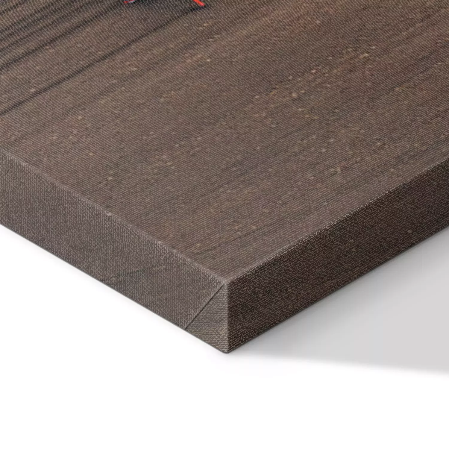 De print wordt aangebracht op hoogwaardig canvas dat op een schildersweefgetouw (spieraam) wordt gespannen. Omdat de print de zijranden bedekt, hoeft het ontwerp niet met een extra kader te worden omlijst. Wij raden ook composities aan die uit meerdere foto's bestaan en zo een coherente compositie vormen.