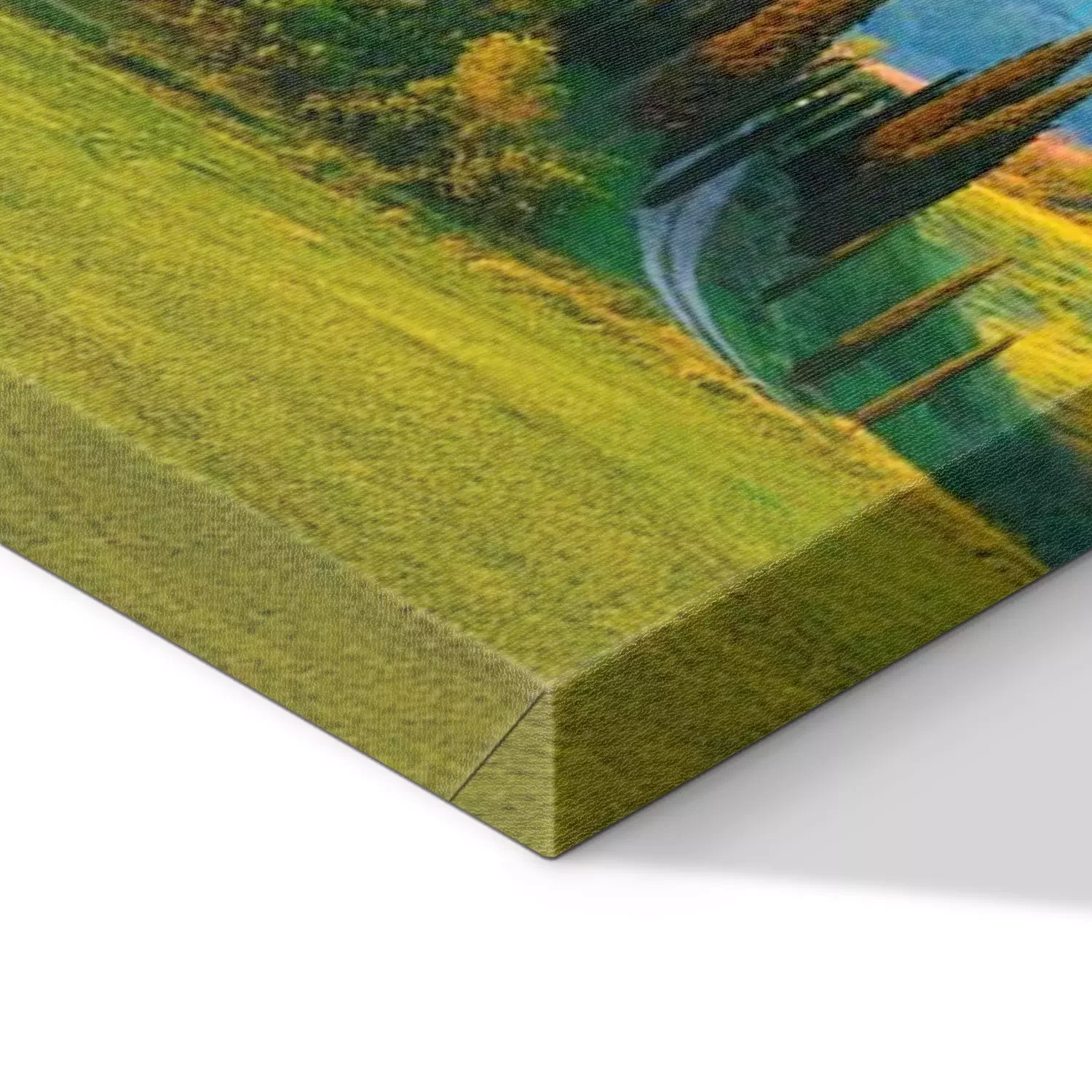 De print wordt aangebracht op hoogwaardig canvas dat op een schildersweefgetouw (spieraam) wordt gespannen. Omdat de print de zijranden bedekt, hoeft het ontwerp niet met een extra kader te worden omlijst. Wij raden ook composities aan die uit meerdere foto's bestaan en zo een coherente compositie vormen.