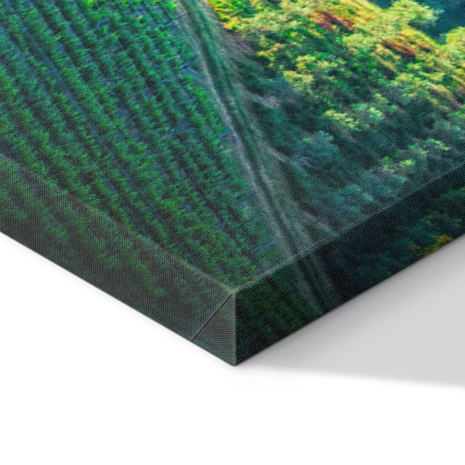 De print wordt aangebracht op hoogwaardig canvas dat op een schildersweefgetouw (spieraam) wordt gespannen. Omdat de print de zijranden bedekt, hoeft het ontwerp niet met een extra kader te worden omlijst. Wij raden ook composities aan die uit meerdere foto's bestaan en zo een coherente compositie vormen.