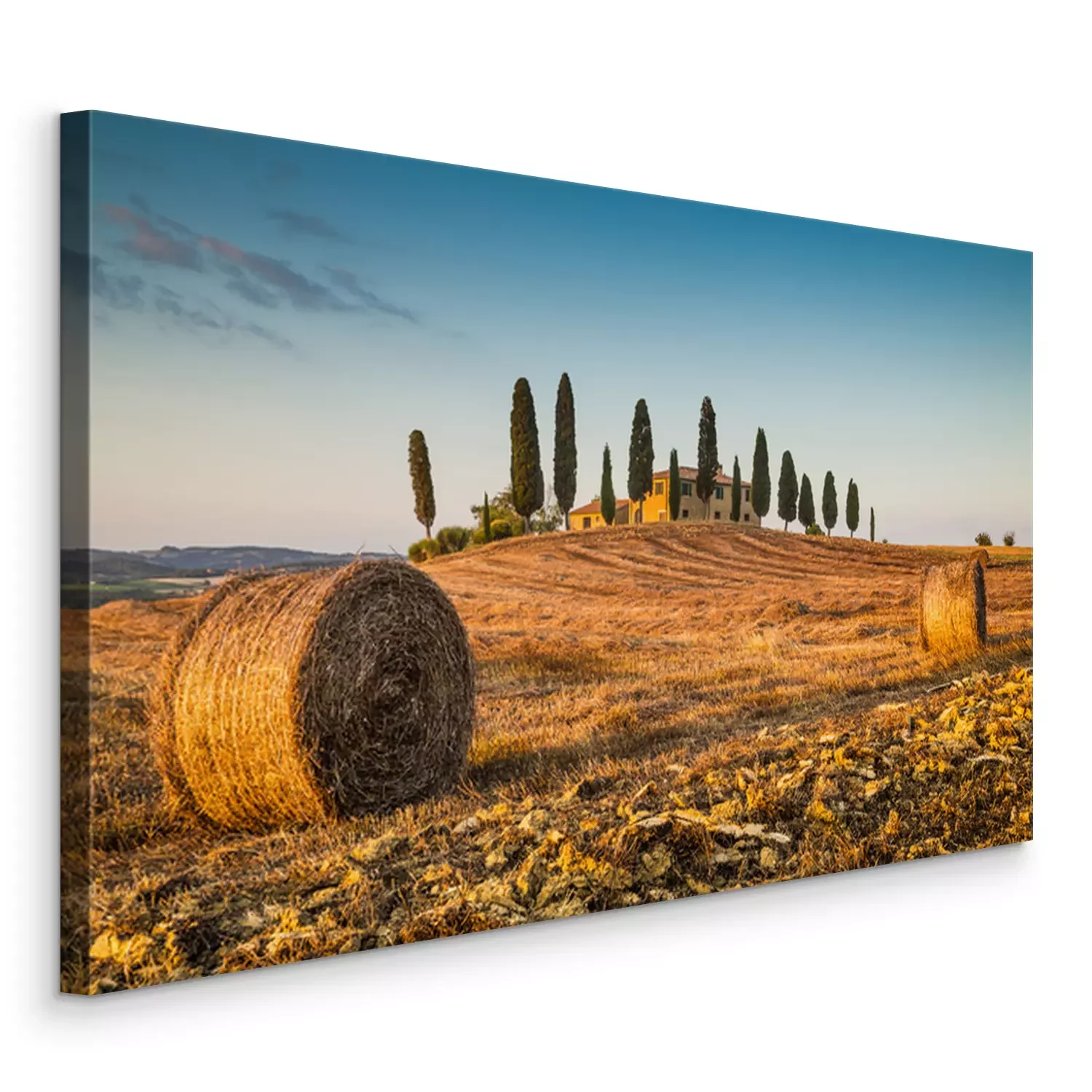 Canvas Toscaanse landschap met boerderij bij zonsondergang, Val d'Orcia, Italië