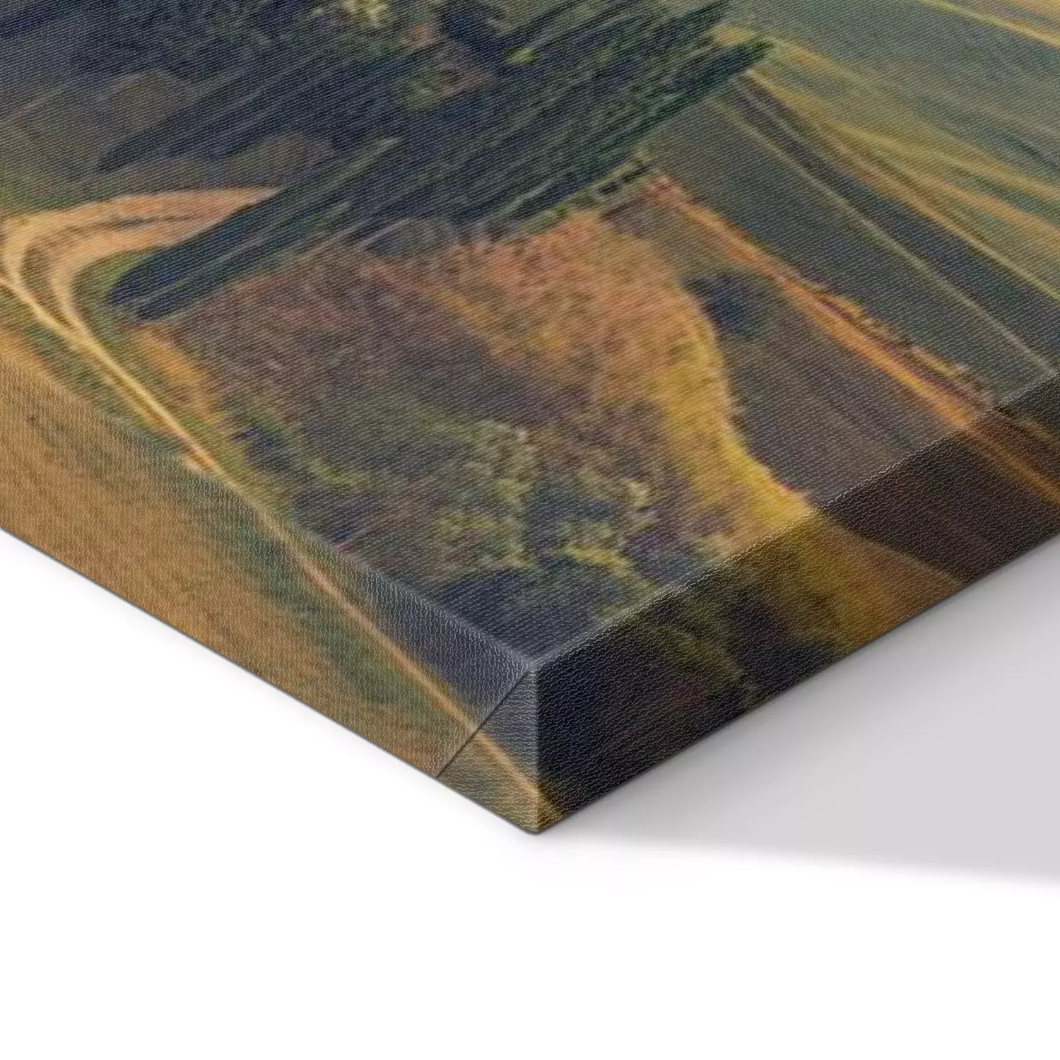 De print wordt aangebracht op hoogwaardig canvas dat op een schildersweefgetouw (spieraam) wordt gespannen. Omdat de print de zijranden bedekt, hoeft het ontwerp niet met een extra kader te worden omlijst. Wij raden ook composities aan die uit meerdere foto's bestaan en zo een coherente compositie vormen.