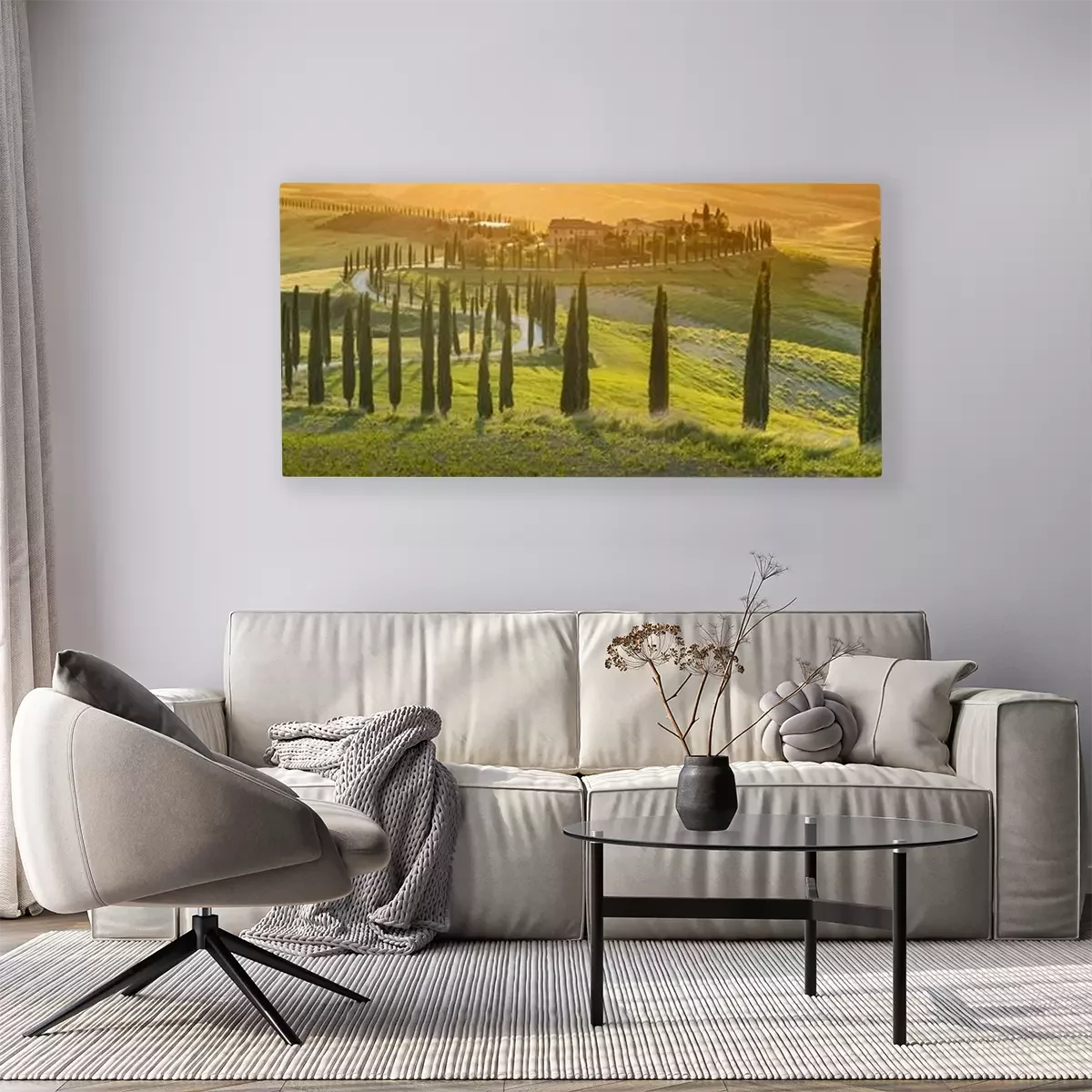 De print wordt aangebracht op hoogwaardig canvas dat op een schildersweefgetouw (spieraam) wordt gespannen. Omdat de print de zijranden bedekt, hoeft het ontwerp niet met een extra kader te worden omlijst. Wij raden ook composities aan die uit meerdere foto's bestaan en zo een coherente compositie vormen.