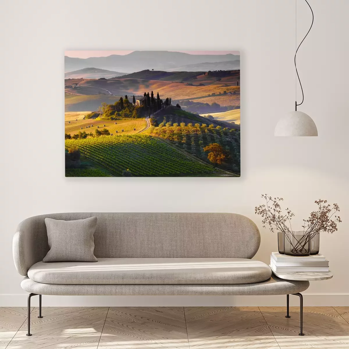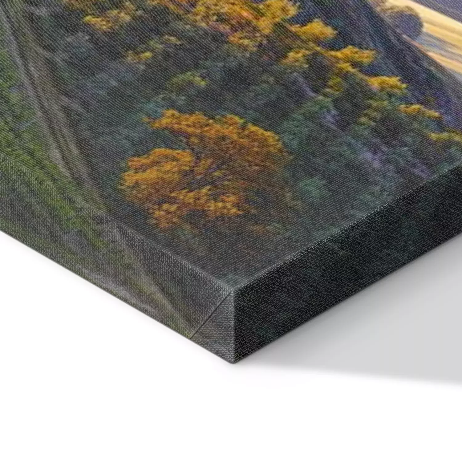 De print wordt aangebracht op hoogwaardig canvas dat op een schildersweefgetouw (spieraam) wordt gespannen. Omdat de print de zijranden bedekt, hoeft het ontwerp niet met een extra kader te worden omlijst. Wij raden ook composities aan die uit meerdere foto's bestaan en zo een coherente compositie vormen.