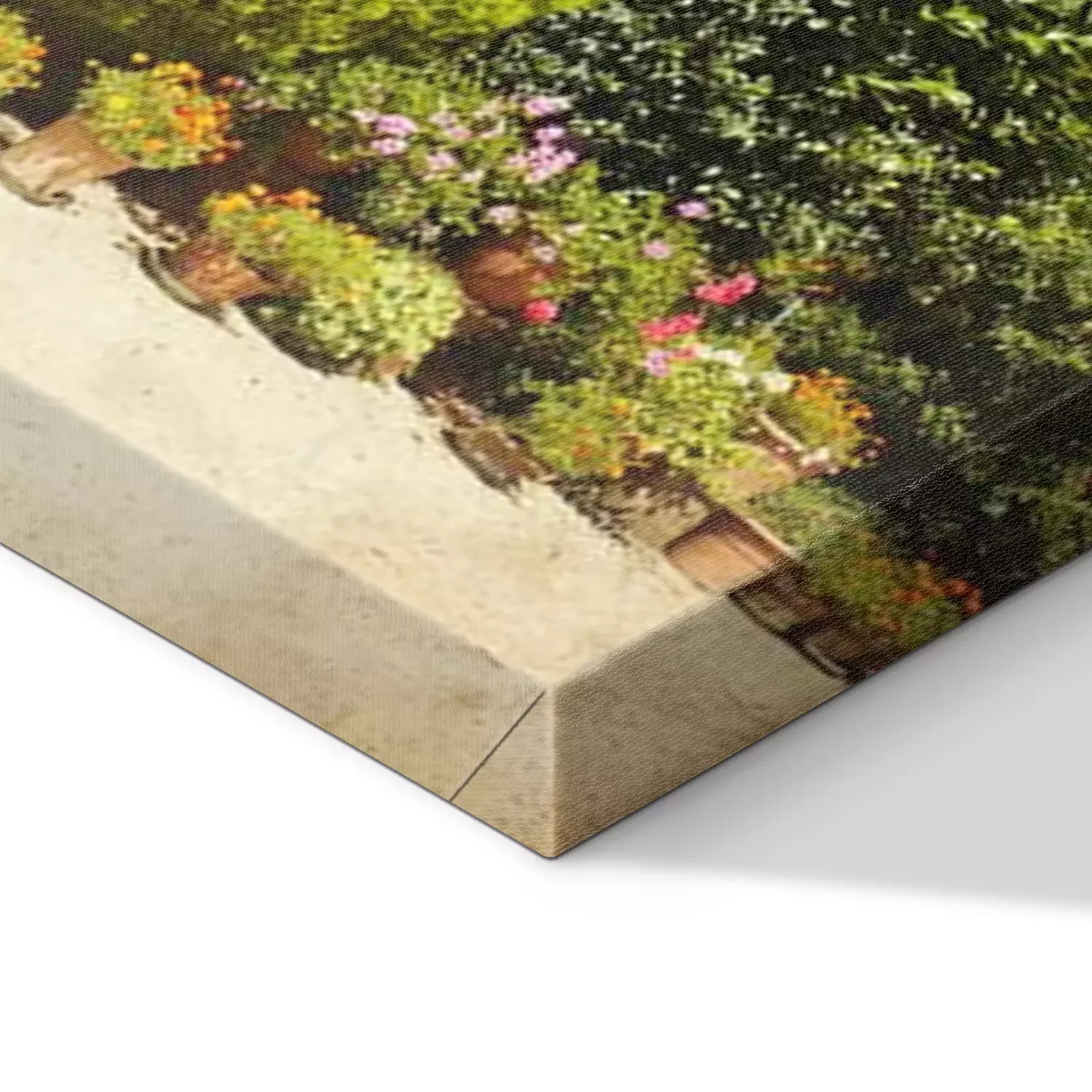 De print wordt aangebracht op hoogwaardig canvas dat op een schildersweefgetouw (spieraam) wordt gespannen. Omdat de print de zijranden bedekt, hoeft het ontwerp niet met een extra kader te worden omlijst. Wij raden ook composities aan die uit meerdere foto's bestaan en zo een coherente compositie vormen.