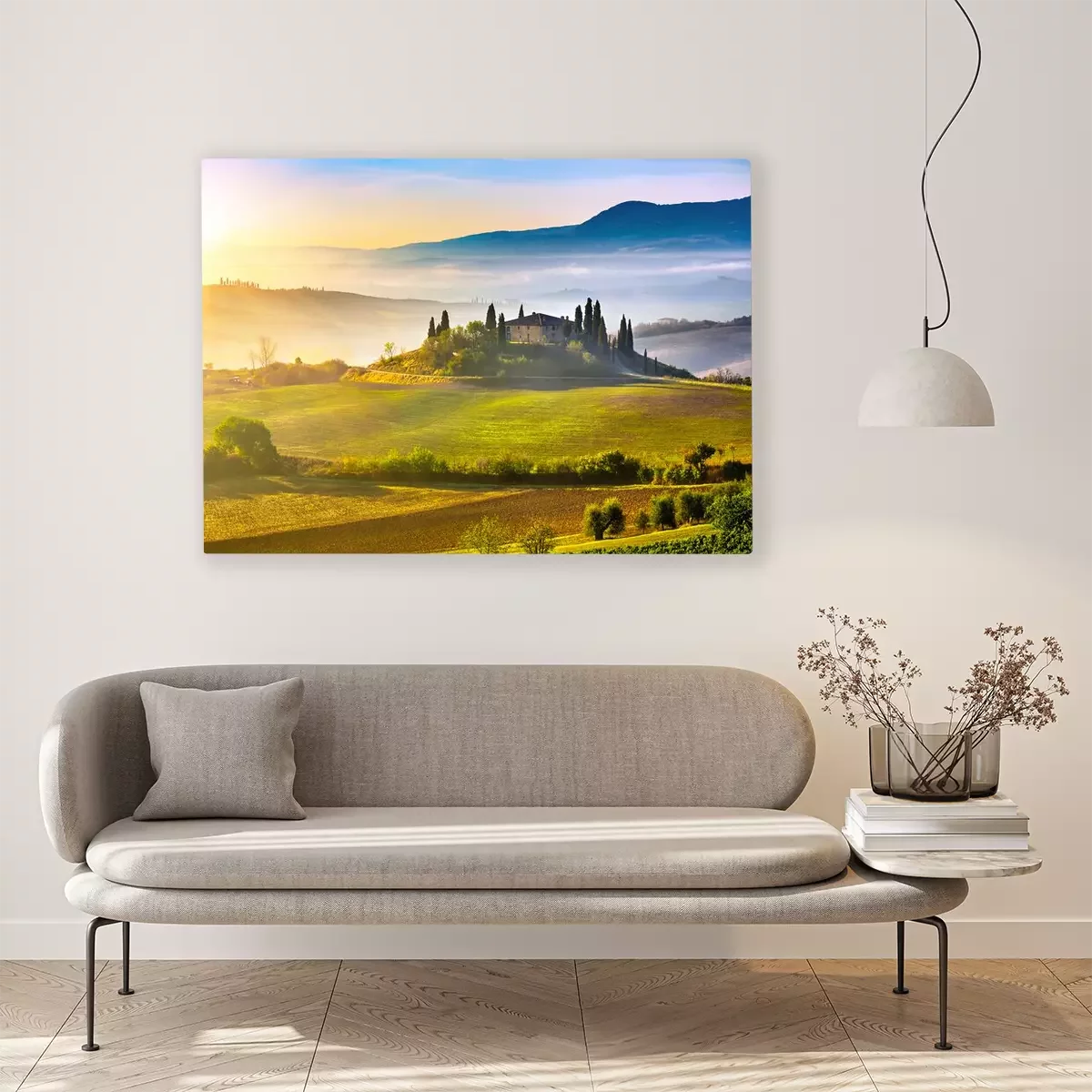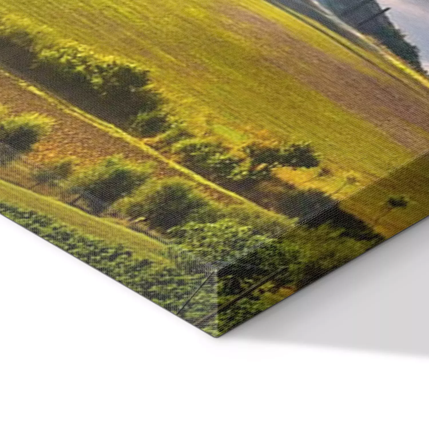 De print wordt aangebracht op hoogwaardig canvas dat op een schildersweefgetouw (spieraam) wordt gespannen. Omdat de print de zijranden bedekt, hoeft het ontwerp niet met een extra kader te worden omlijst. Wij raden ook composities aan die uit meerdere foto's bestaan en zo een coherente compositie vormen.