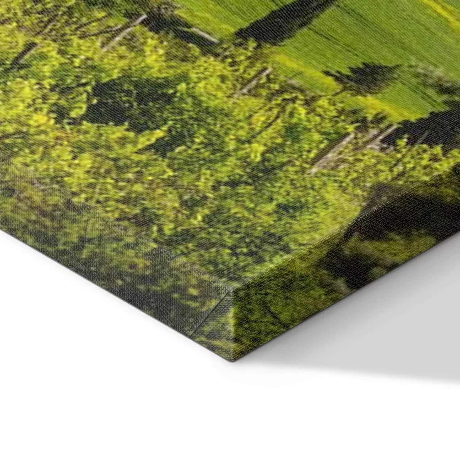 De print wordt aangebracht op hoogwaardig canvas dat op een schildersweefgetouw (spieraam) wordt gespannen. Omdat de print de zijranden bedekt, hoeft het ontwerp niet met een extra kader te worden omlijst. Wij raden ook composities aan die uit meerdere foto's bestaan en zo een coherente compositie vormen.