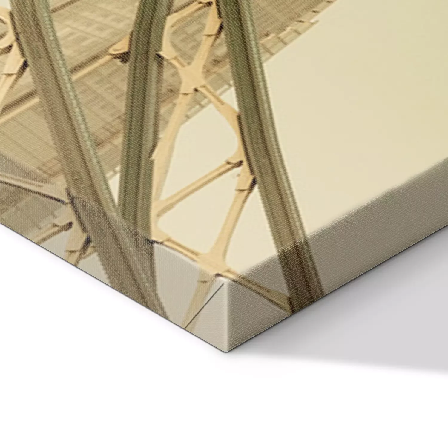 De print wordt aangebracht op hoogwaardig canvas dat op een schildersweefgetouw (spieraam) wordt gespannen. Omdat de print de zijranden bedekt, hoeft het ontwerp niet met een extra kader te worden omlijst. Wij raden ook composities aan die uit meerdere foto's bestaan en zo een coherente compositie vormen.