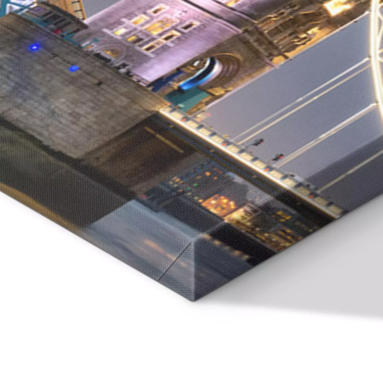De print wordt aangebracht op hoogwaardig canvas dat op een schildersweefgetouw (spieraam) wordt gespannen. Omdat de print de zijranden bedekt, hoeft het ontwerp niet met een extra kader te worden omlijst. Wij raden ook composities aan die uit meerdere foto's bestaan en zo een coherente compositie vormen.