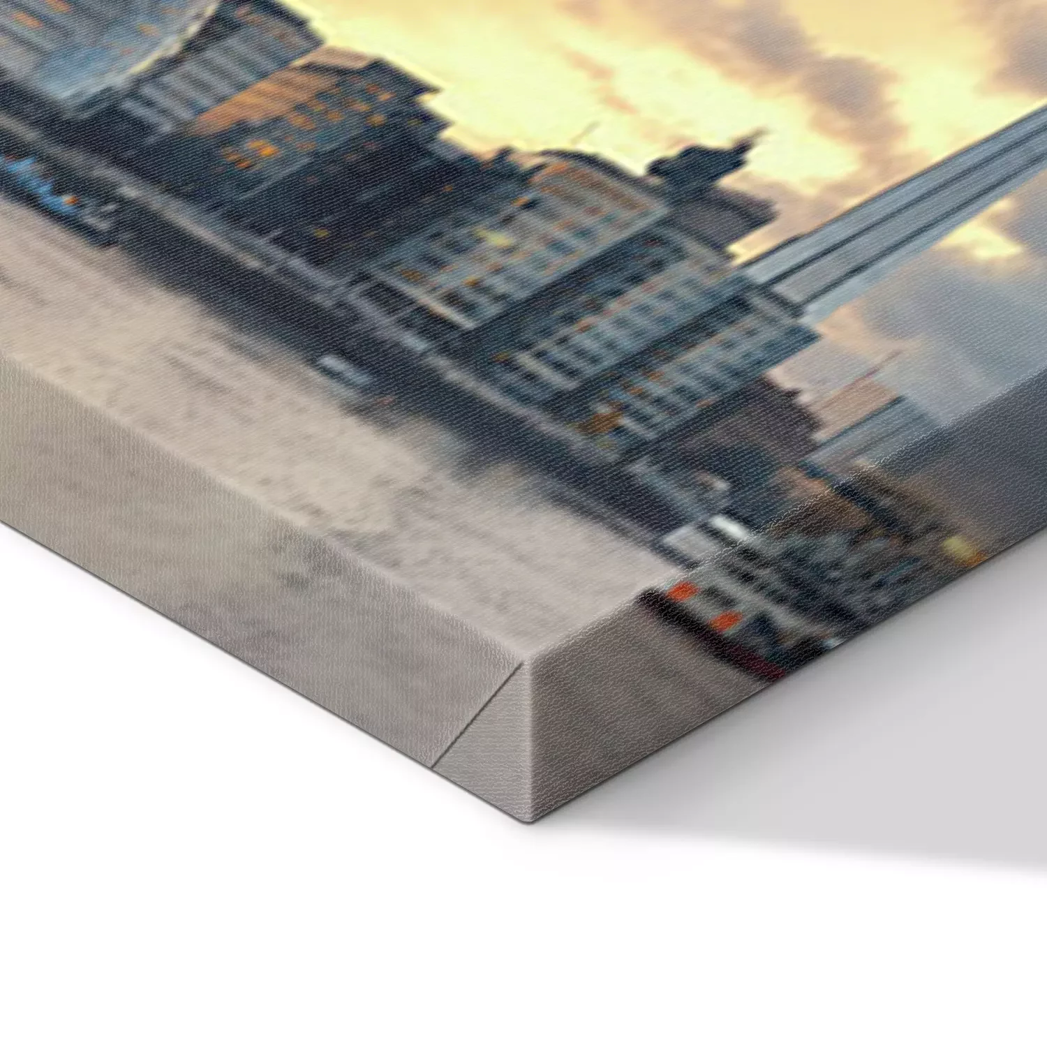De print wordt aangebracht op hoogwaardig canvas dat op een schildersweefgetouw (spieraam) wordt gespannen. Omdat de print de zijranden bedekt, hoeft het ontwerp niet met een extra kader te worden omlijst. Wij raden ook composities aan die uit meerdere foto's bestaan en zo een coherente compositie vormen.