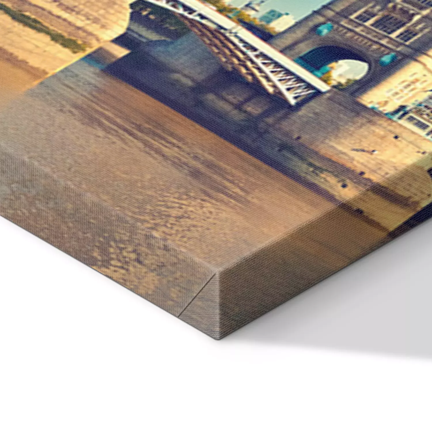 De print wordt aangebracht op hoogwaardig canvas dat op een schildersweefgetouw (spieraam) wordt gespannen. Omdat de print de zijranden bedekt, hoeft het ontwerp niet met een extra kader te worden omlijst. Wij raden ook composities aan die uit meerdere foto's bestaan en zo een coherente compositie vormen.