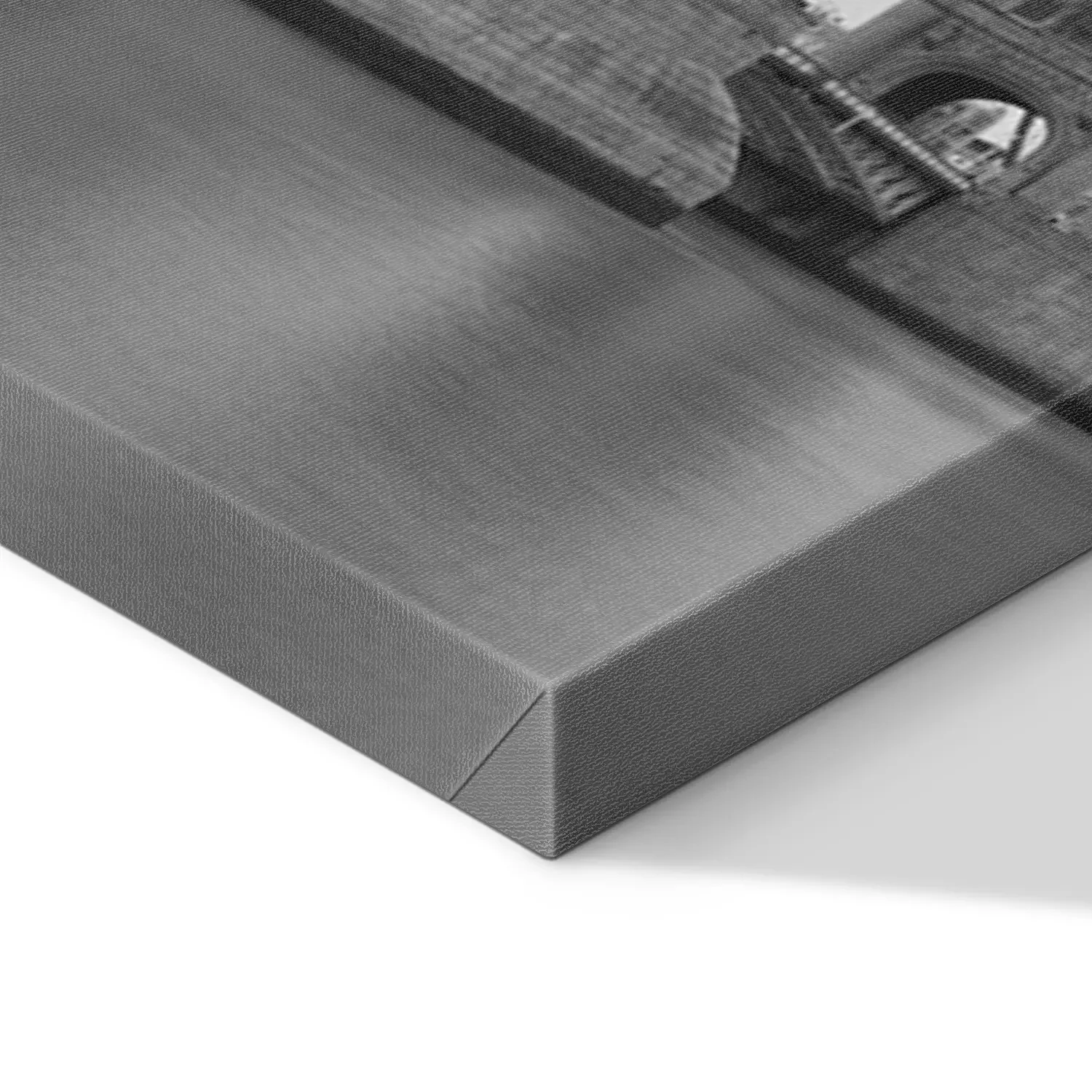 De print wordt aangebracht op hoogwaardig canvas dat op een schildersweefgetouw (spieraam) wordt gespannen. Omdat de print de zijranden bedekt, hoeft het ontwerp niet met een extra kader te worden omlijst. Wij raden ook composities aan die uit meerdere foto's bestaan en zo een coherente compositie vormen.