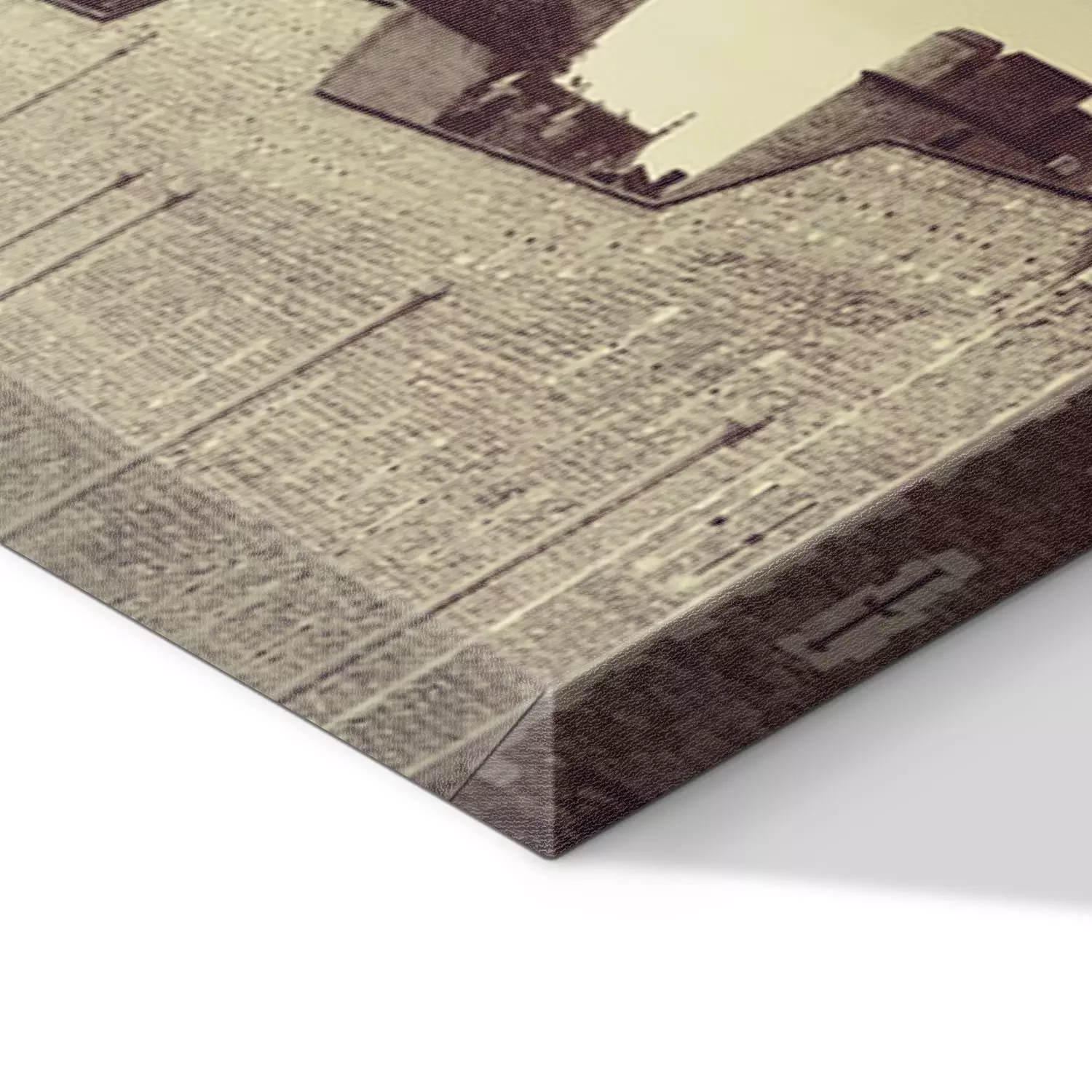 De print wordt aangebracht op hoogwaardig canvas dat op een schildersweefgetouw (spieraam) wordt gespannen. Omdat de print de zijranden bedekt, hoeft het ontwerp niet met een extra kader te worden omlijst. Wij raden ook composities aan die uit meerdere foto's bestaan en zo een coherente compositie vormen.
