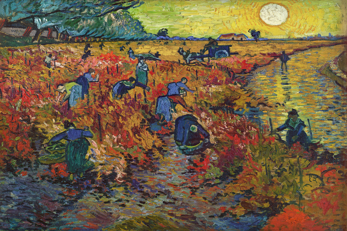 Canvas: Traditionele boeren oogsten gewassen op het veld