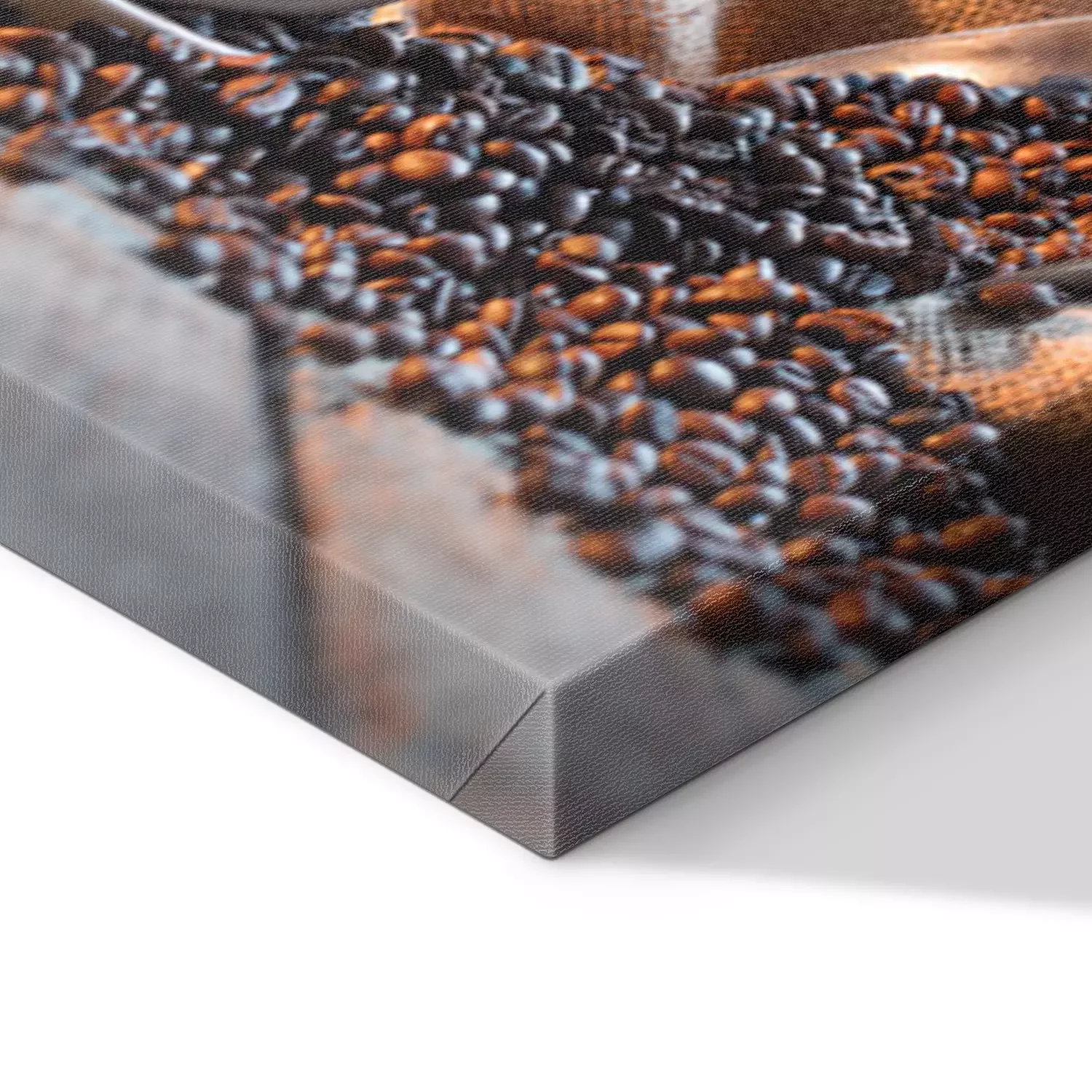 De print wordt aangebracht op hoogwaardig canvas dat op een schildersweefgetouw (spieraam) wordt gespannen. Omdat de print de zijranden bedekt, hoeft het ontwerp niet met een extra kader te worden omlijst. Wij raden ook composities aan die uit meerdere foto's bestaan en zo een coherente compositie vormen.