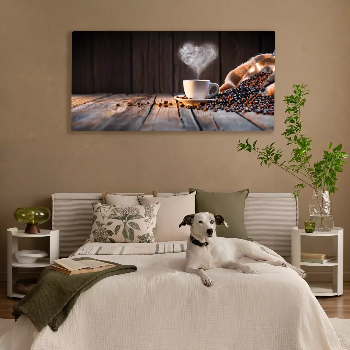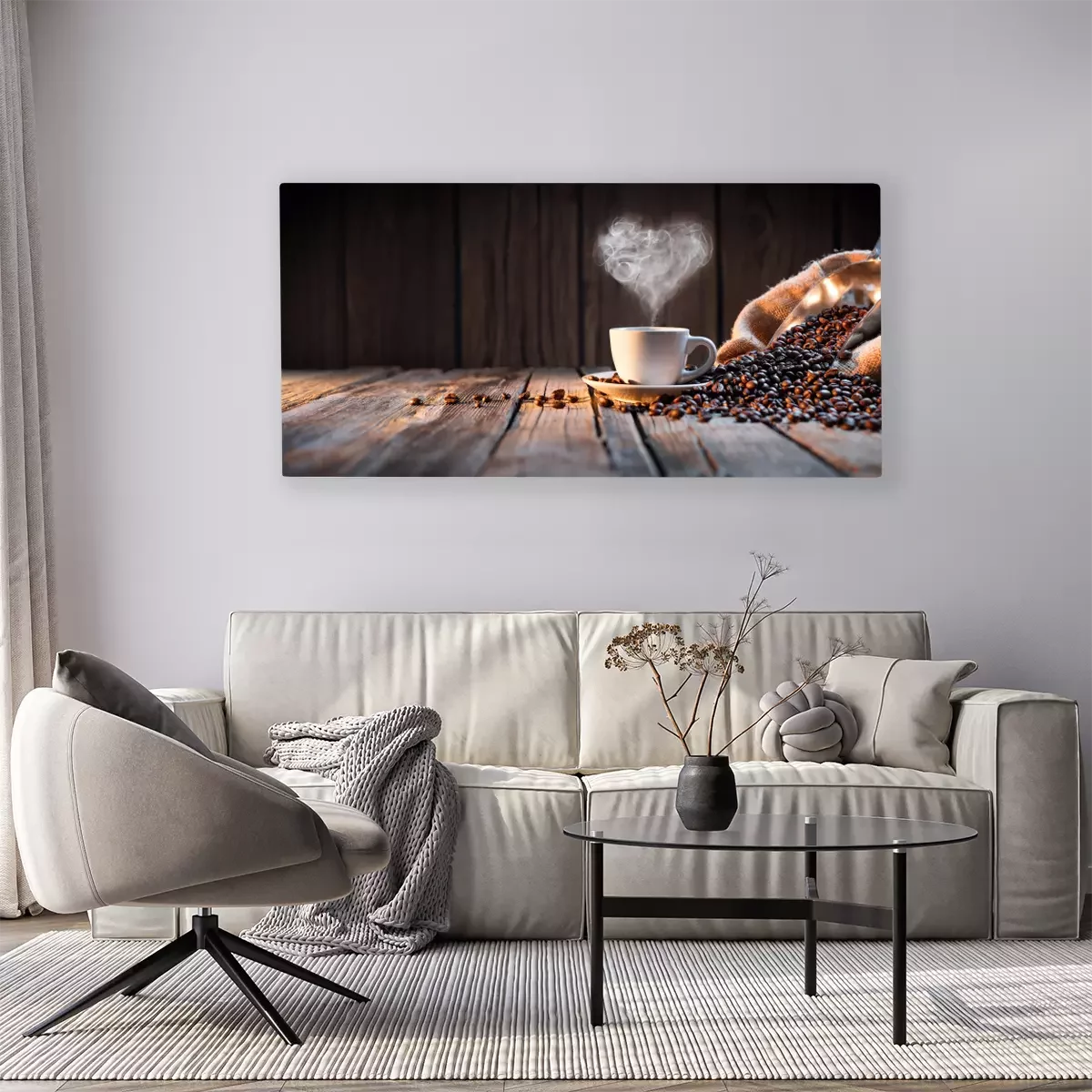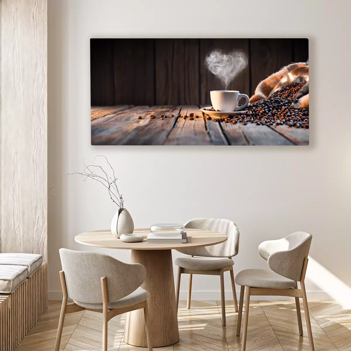Canvas Traditionele Coffee Kop Met Hart-gevormde stoom op Rustieke Houten
