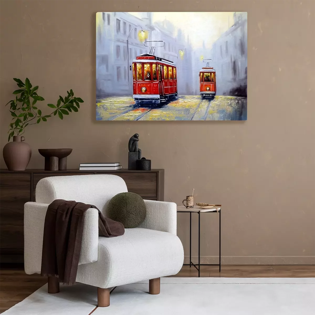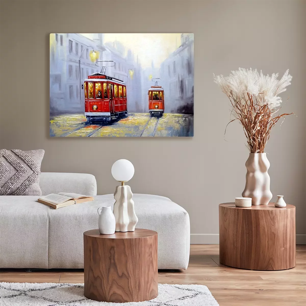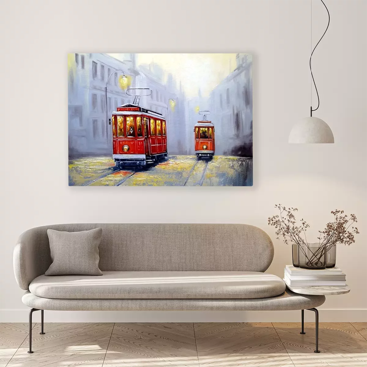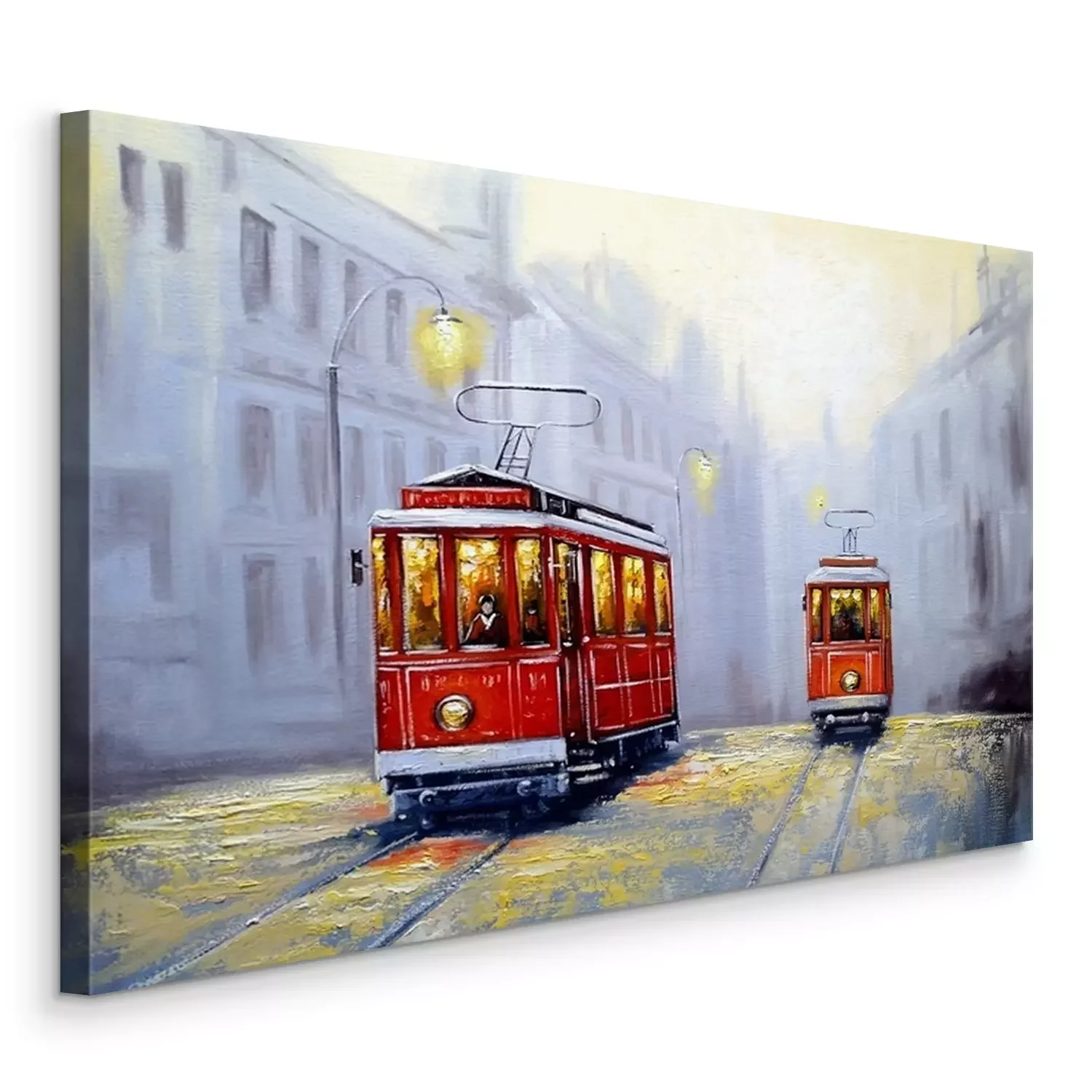 Canvas: Tram in oude stad, olie schilderijen landschap
