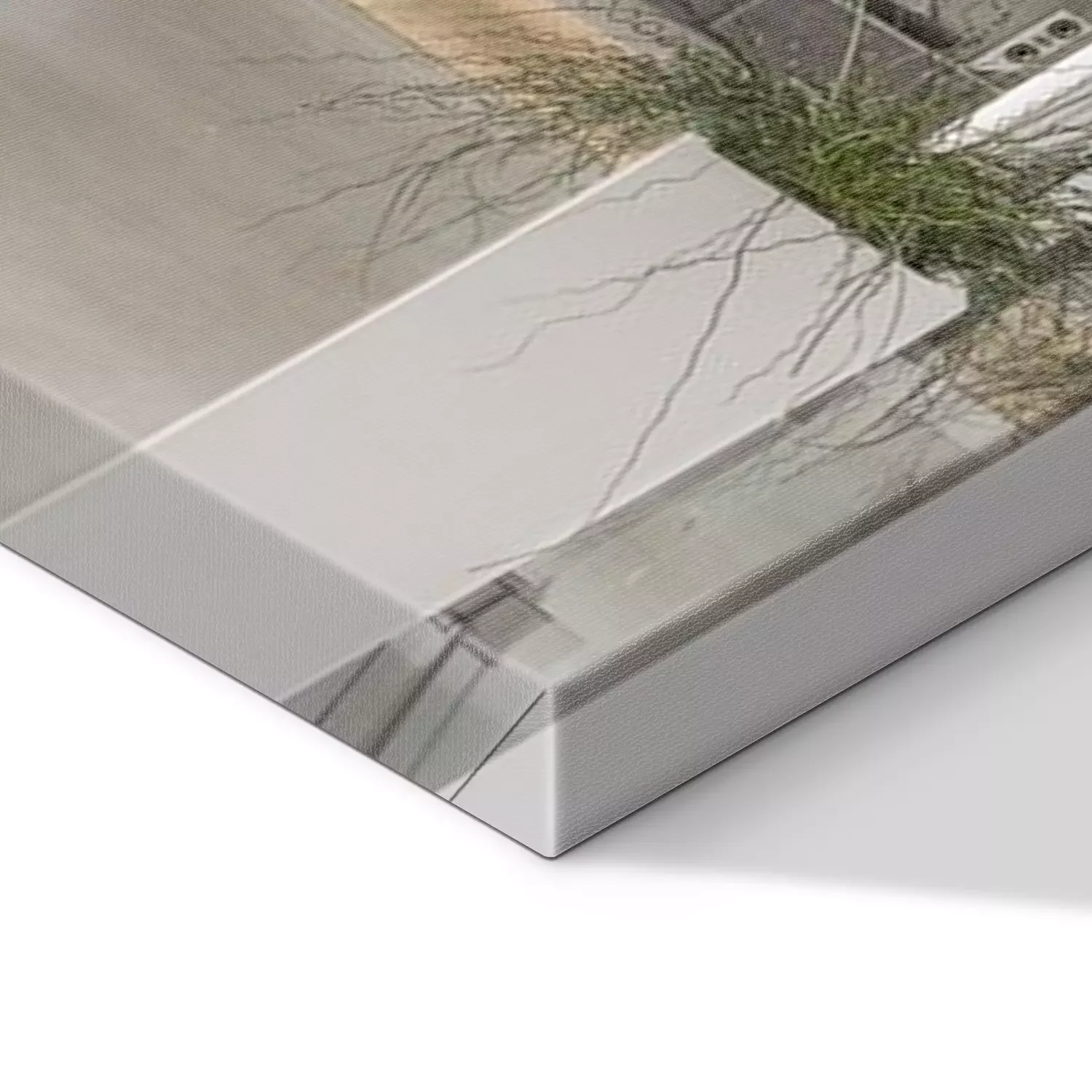 De print wordt aangebracht op hoogwaardig canvas dat op een schildersweefgetouw (spieraam) wordt gespannen. Omdat de print de zijranden bedekt, hoeft het ontwerp niet met een extra kader te worden omlijst. Wij raden ook composities aan die uit meerdere foto's bestaan en zo een coherente compositie vormen.