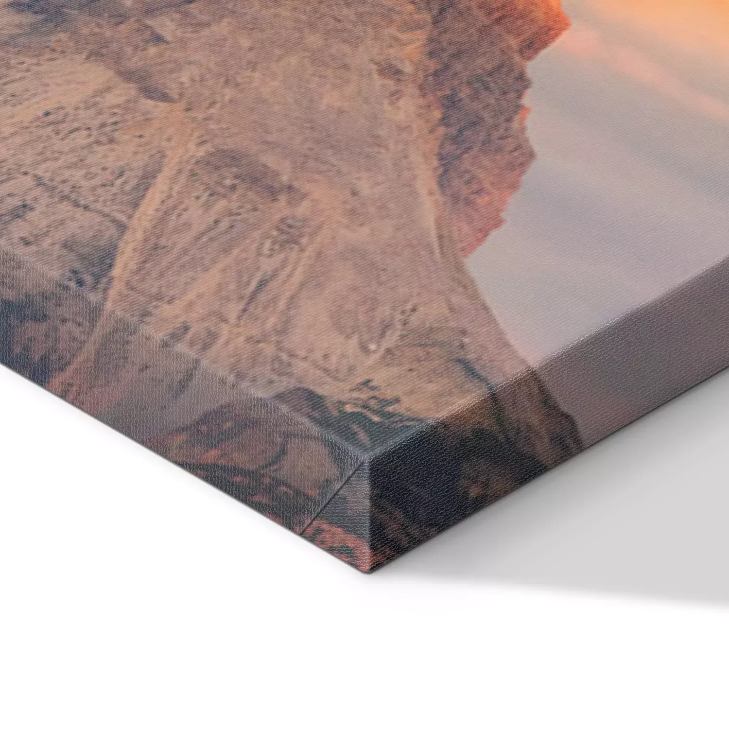 De print wordt aangebracht op hoogwaardig canvas dat op een schildersweefgetouw (spieraam) wordt gespannen. Omdat de print de zijranden bedekt, hoeft het ontwerp niet met een extra kader te worden omlijst. Wij raden ook composities aan die uit meerdere foto's bestaan en zo een coherente compositie vormen.
