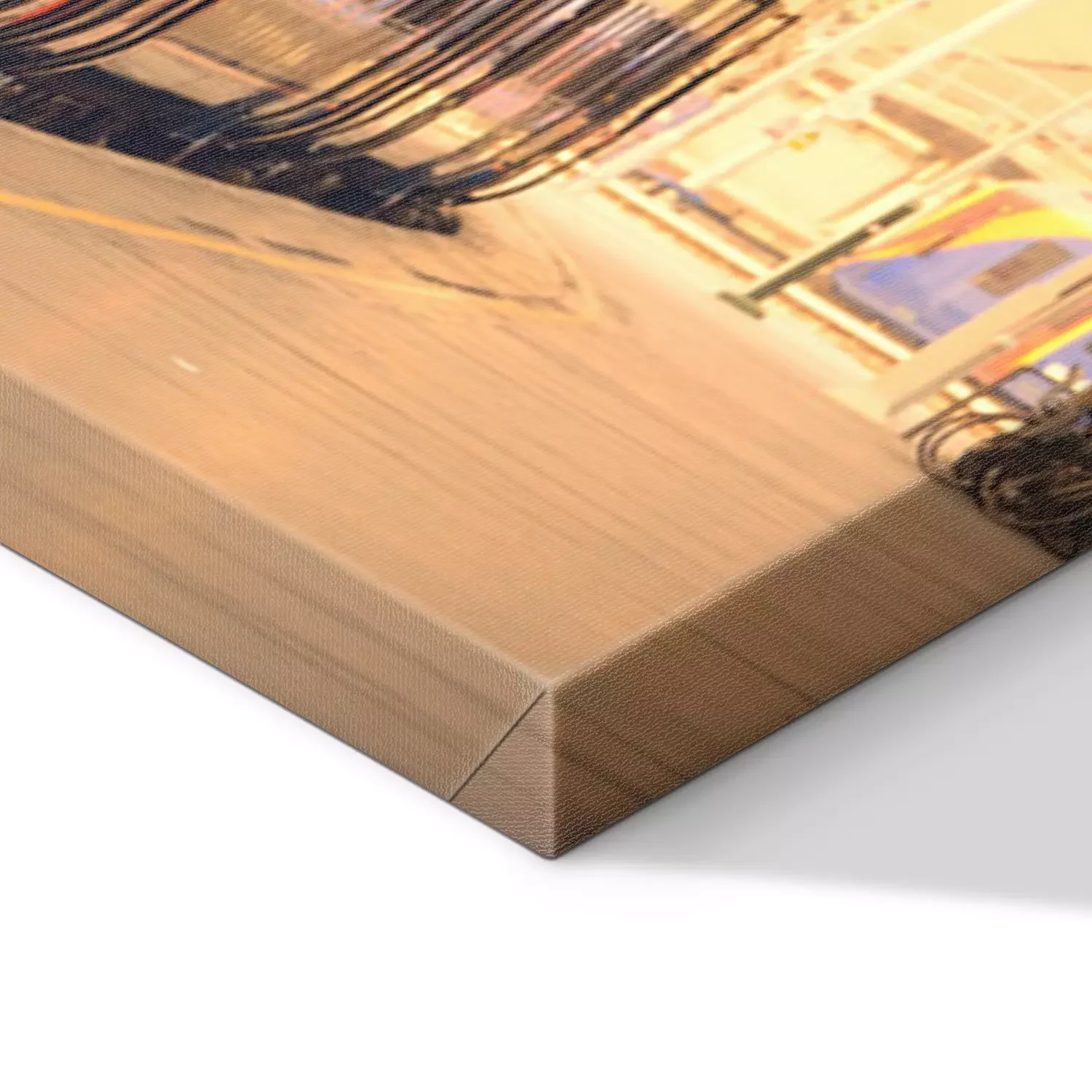 De print wordt aangebracht op hoogwaardig canvas dat op een schildersweefgetouw (spieraam) wordt gespannen. Omdat de print de zijranden bedekt, hoeft het ontwerp niet met een extra kader te worden omlijst. Wij raden ook composities aan die uit meerdere foto's bestaan en zo een coherente compositie vormen.