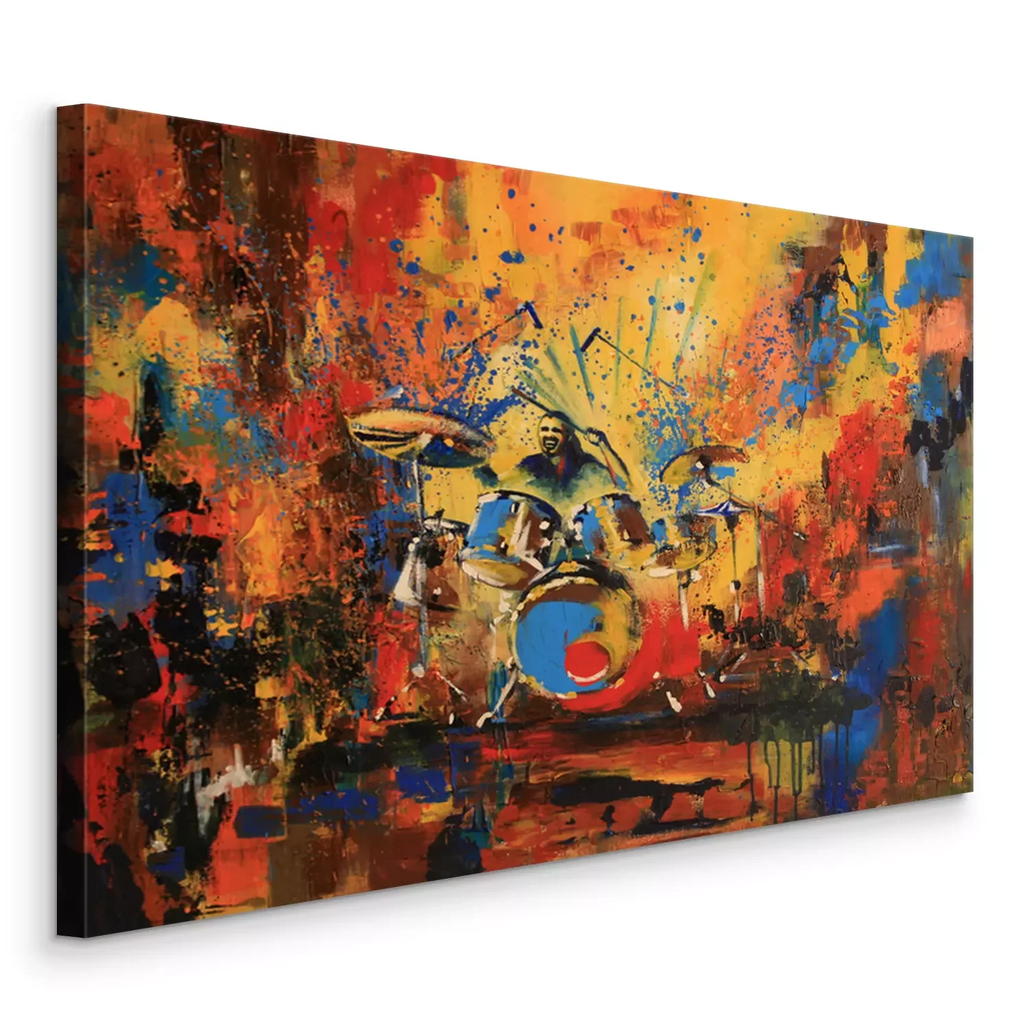 Saxofonist op een zwarte achtergrond met sprays en spatten, Fantasy originele kunst, acryl op doek