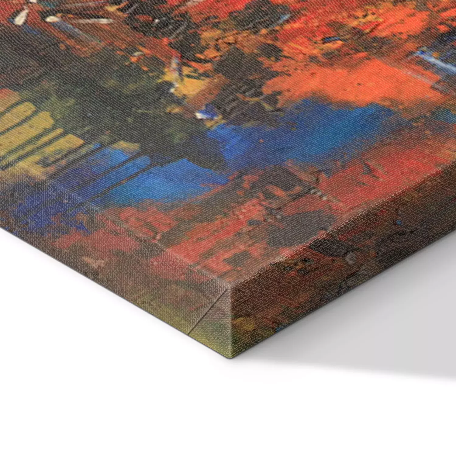 De print wordt aangebracht op hoogwaardig canvas dat op een schildersweefgetouw (spieraam) wordt gespannen. Omdat de print de zijranden bedekt, hoeft het ontwerp niet met een extra kader te worden omlijst. Wij raden ook composities aan die uit meerdere foto's bestaan en zo een coherente compositie vormen.