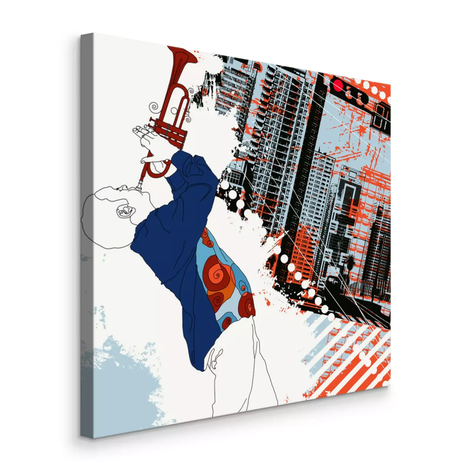 Canvas: trompettist in de stad