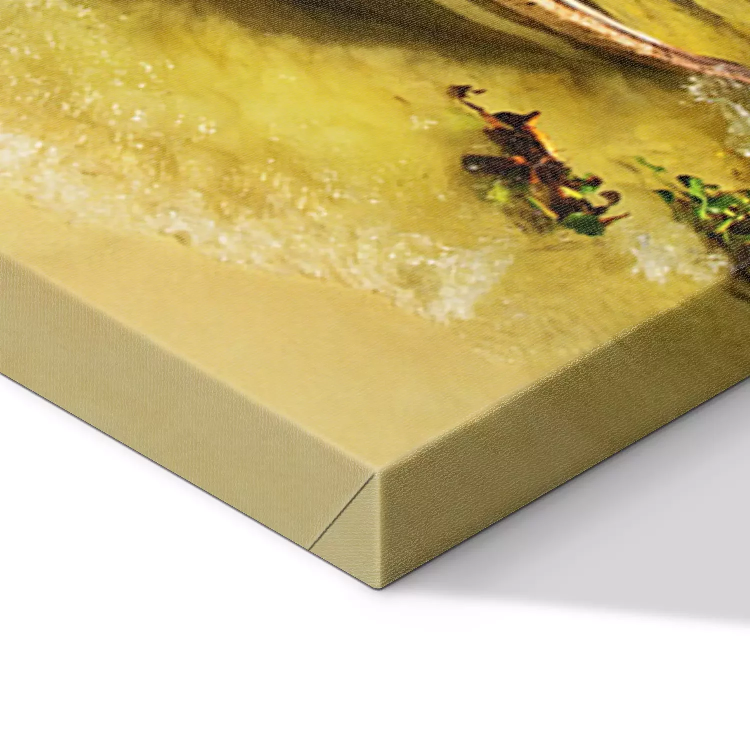 De print wordt aangebracht op hoogwaardig canvas dat op een schildersweefgetouw (spieraam) wordt gespannen. Omdat de print de zijranden bedekt, hoeft het ontwerp niet met een extra kader te worden omlijst. Wij raden ook composities aan die uit meerdere foto's bestaan en zo een coherente compositie vormen.