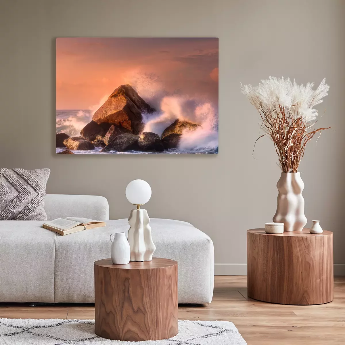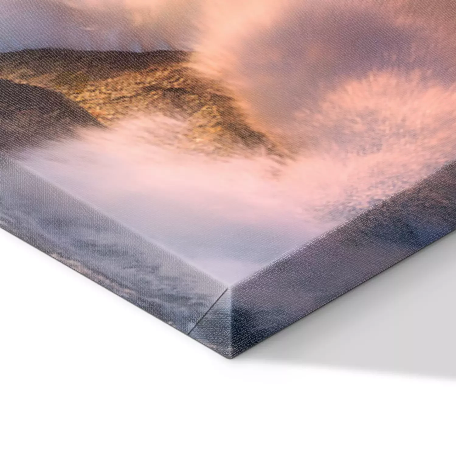 De print wordt aangebracht op hoogwaardig canvas dat op een schildersweefgetouw (spieraam) wordt gespannen. Omdat de print de zijranden bedekt, hoeft het ontwerp niet met een extra kader te worden omlijst. Wij raden ook composities aan die uit meerdere foto's bestaan en zo een coherente compositie vormen.