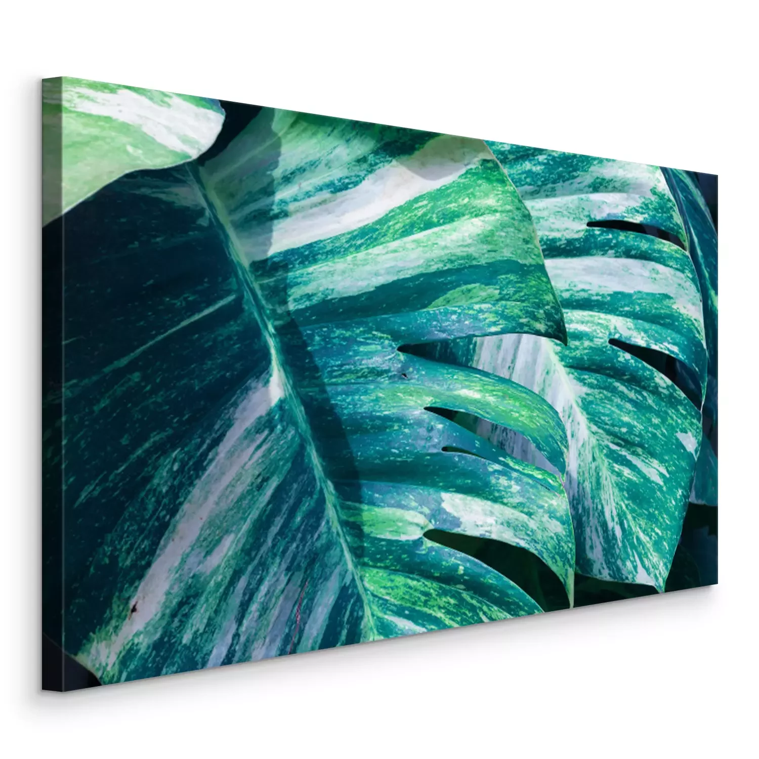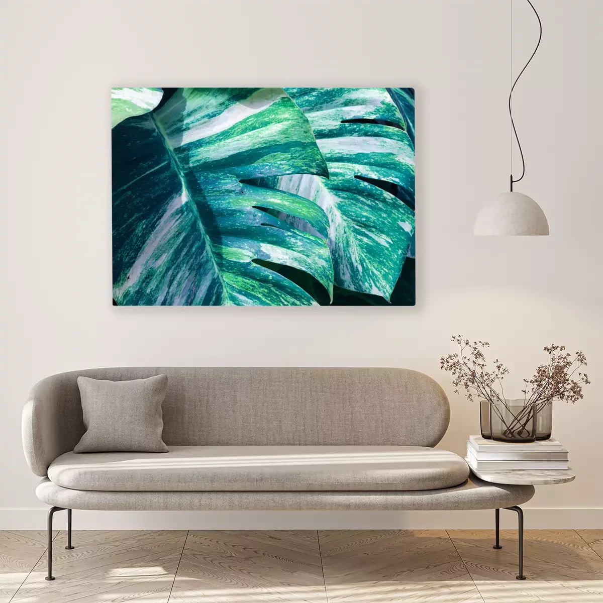 Een van de meest populaire decoratieve motieven in de wereld van interieurontwerp zijn momenteel bladeren. Canvas met zo'n plantaardig patroon verdient bijzondere aandacht wanneer men een vleugje natuur in het huiselijke toevluchtsoord wil brengen en daarmee een ruimte wil creëren die de zintuigen kalmeert, ontspant en tot rust brengt. Het is moeilijk om een motief te vinden dat meer bijdraagt aan rust dan groene bladeren. Canvas met het hier gepresenteerde patroon kan in veel verschillende interieurstijlen worden toegepast, wat een groot voordeel is. Het past perfect in een boho-, eco- of urban jungle-stijl, omdat in elk van deze interieurs motieven uit de natuur een grote rol spelen. Tegelijkertijd, door zo'n canvas aan de muur te hangen, kunnen tropische bladeren een moderne, minimalistische of zelfs industriële ruimte visueel opwarmen. Groen heeft het voordeel dat het bij de meeste kleuren past, dus ongeacht of de kamer is ingericht in warme of koele tinten, zal een accent met bladeren er geweldig uitzien. Wat ook opvalt, is de compositie dat het canvas presenteert. Bladeren zijn in sterke vergroting weergegeven, waardoor ze op het eerste gezicht iets abstracts hebben. Met welke accessoires zal zo'n canvas goed combineren? Tropische bladeren kunnen prachtig gecombineerd worden met rieten of rotan accessoires. Dit kunnen stoelen in de woonkamer zijn, een hoofdeinde in de slaapkamer, of lampenkappen die het licht mooi verspreiden. Een uitstekend idee is ook om een dergelijk canvas aan de muur op te hangen tussen weelderige kamerplanten. Zo wordt de natuurlijke sfeer in de woning versterkt. Hiervoor raden we aan om voor een grootformaat canvas te kiezen. Tropische bladeren worden zo het dominante element in de kamer. Deze oplossing is een geweldig idee voor een thuiskantoor, omdat de ruimte wordt omgetoverd tot een oase van rust, wat de concentratie bevordert. Motieven uit de natuur zijn tijdloos en raken nooit uit de mode, waardoor ze een betrouwbare decoratieve keuze zijn wanneer men op zoek is naar een oplossing voor de lange termijn.