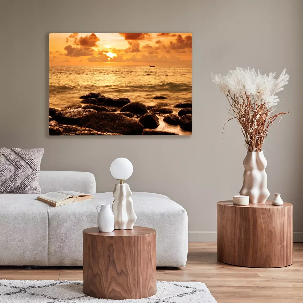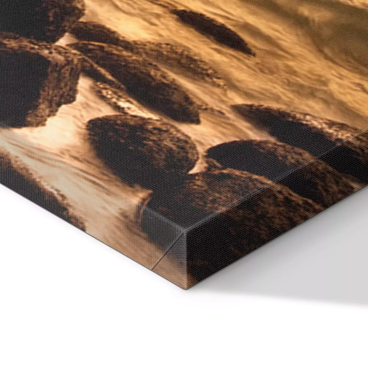 De print wordt aangebracht op hoogwaardig canvas dat op een schildersweefgetouw (spieraam) wordt gespannen. Omdat de print de zijranden bedekt, hoeft het ontwerp niet met een extra kader te worden omlijst. Wij raden ook composities aan die uit meerdere foto's bestaan en zo een coherente compositie vormen.