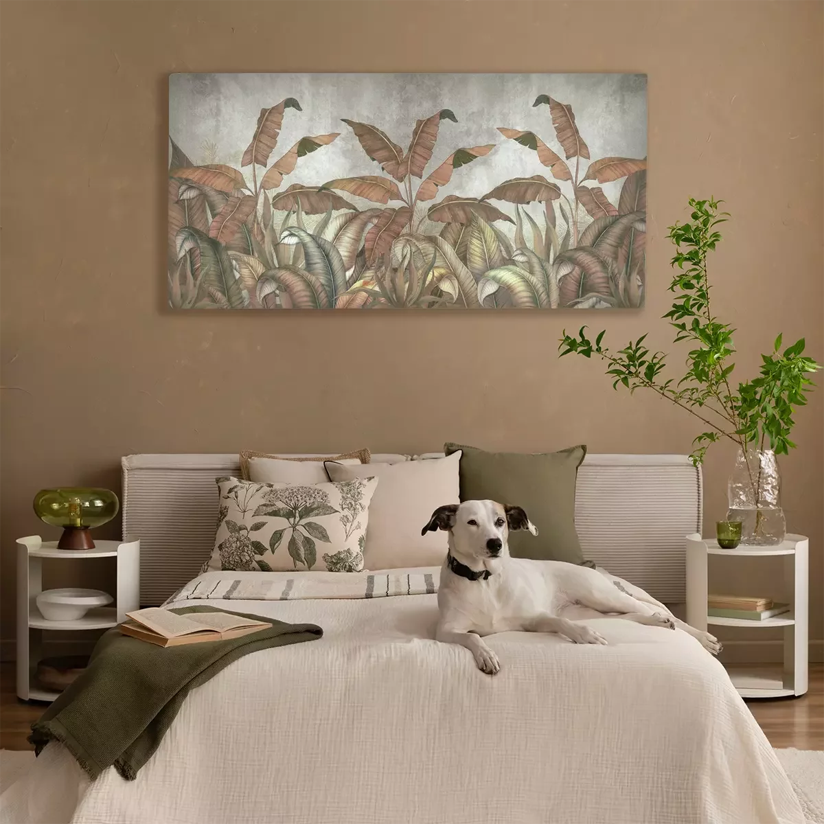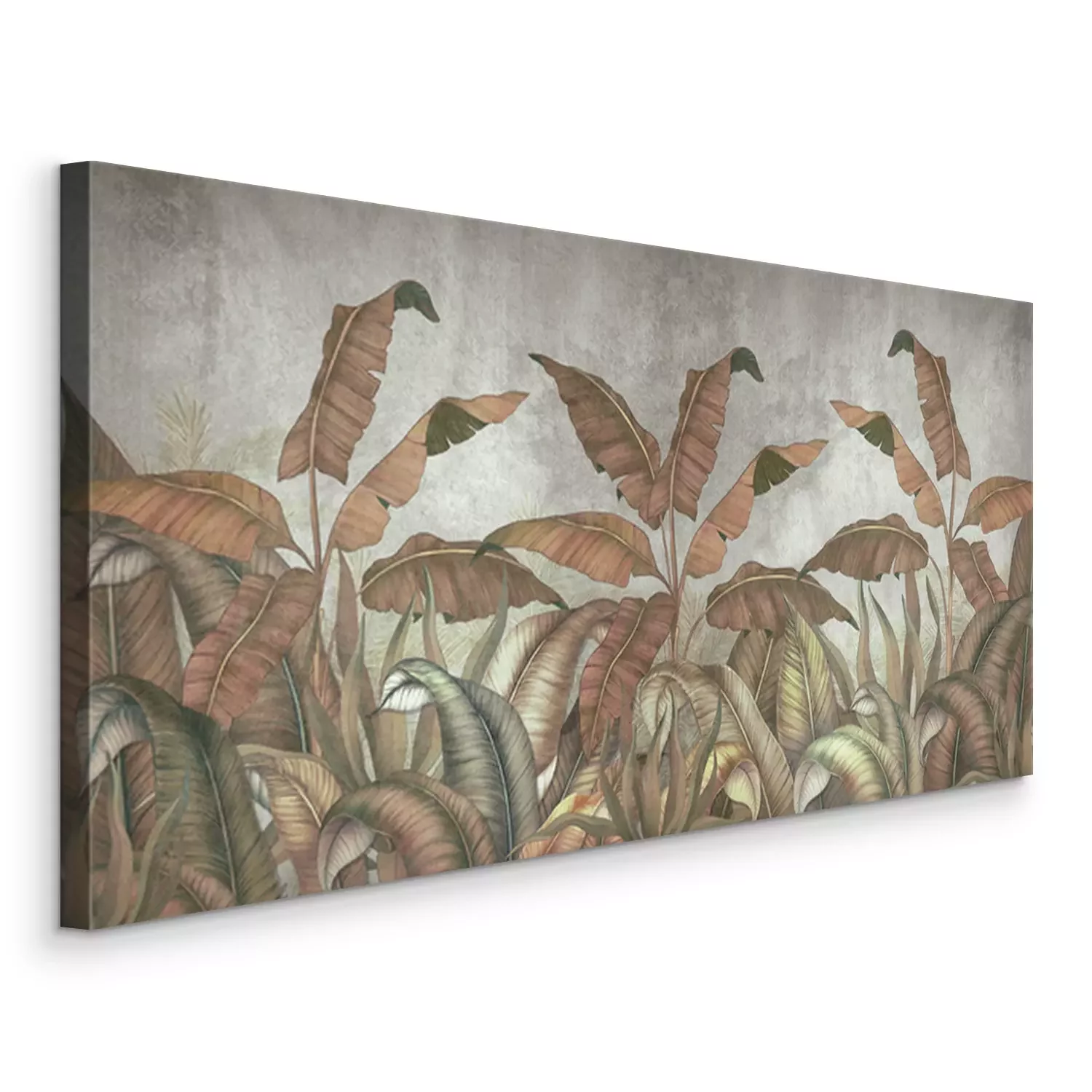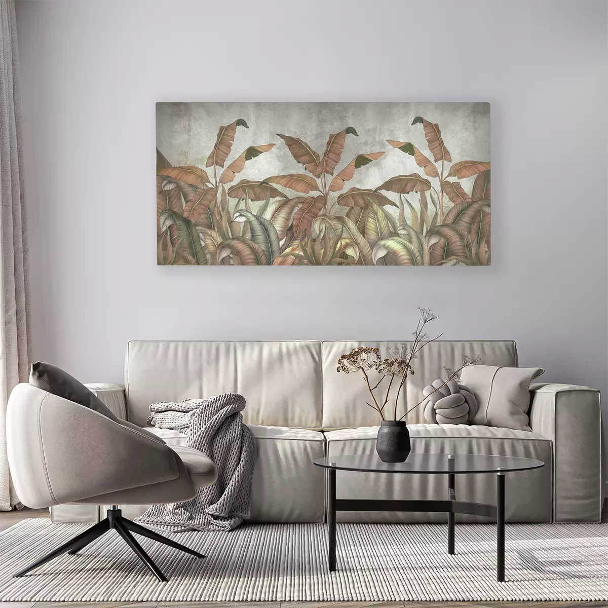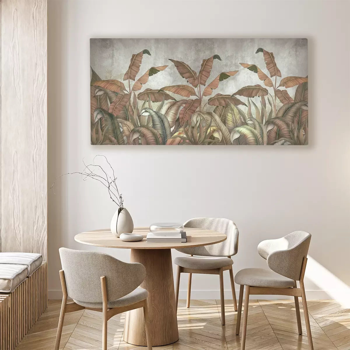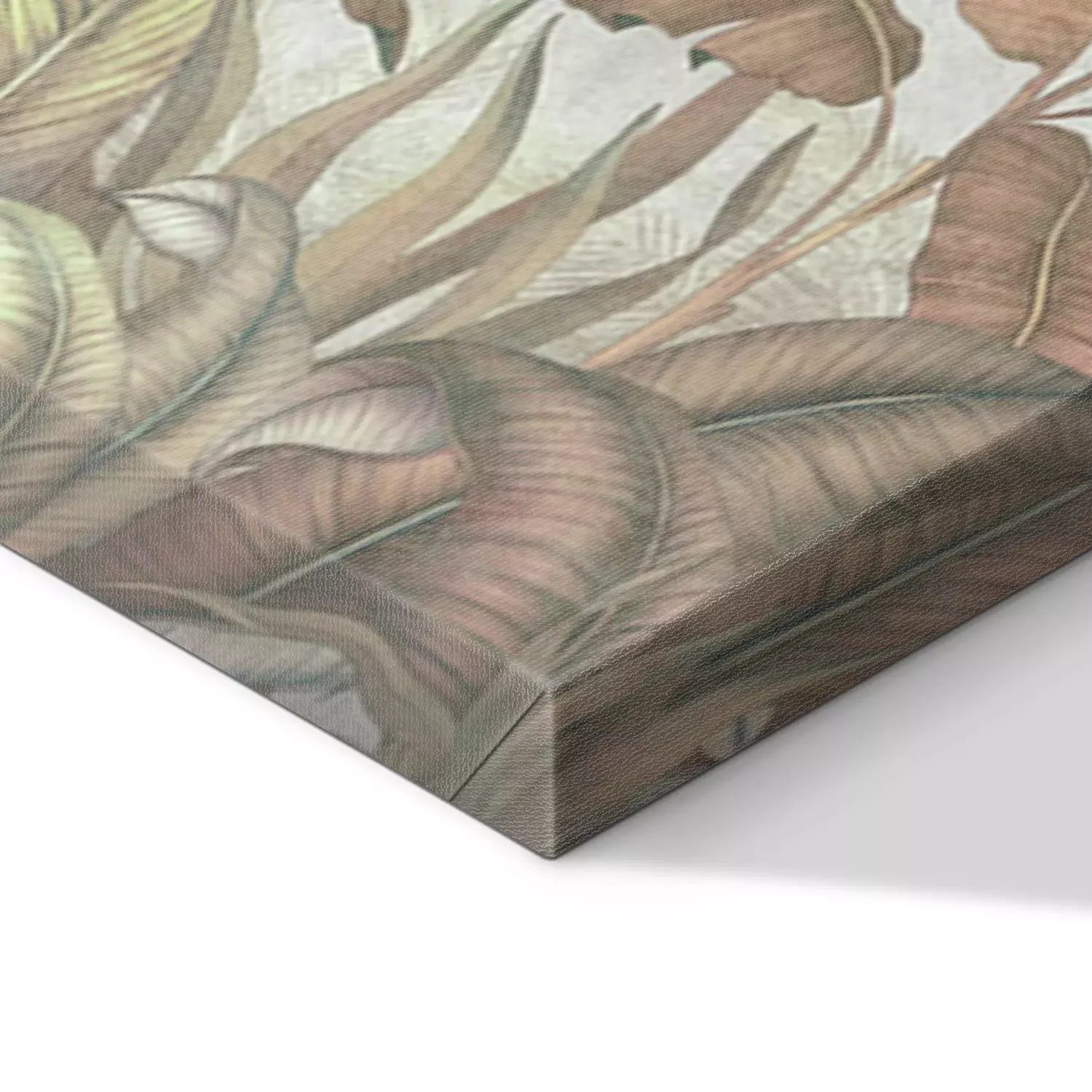 Canvas: Tropische planten en bladeren op een grijze achtergrond