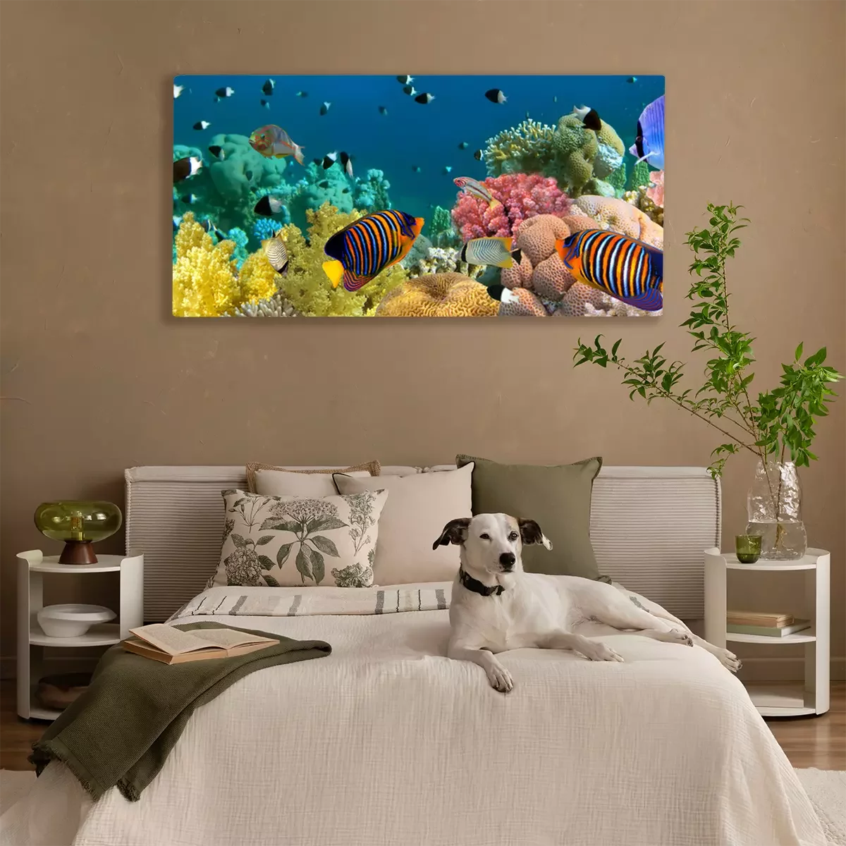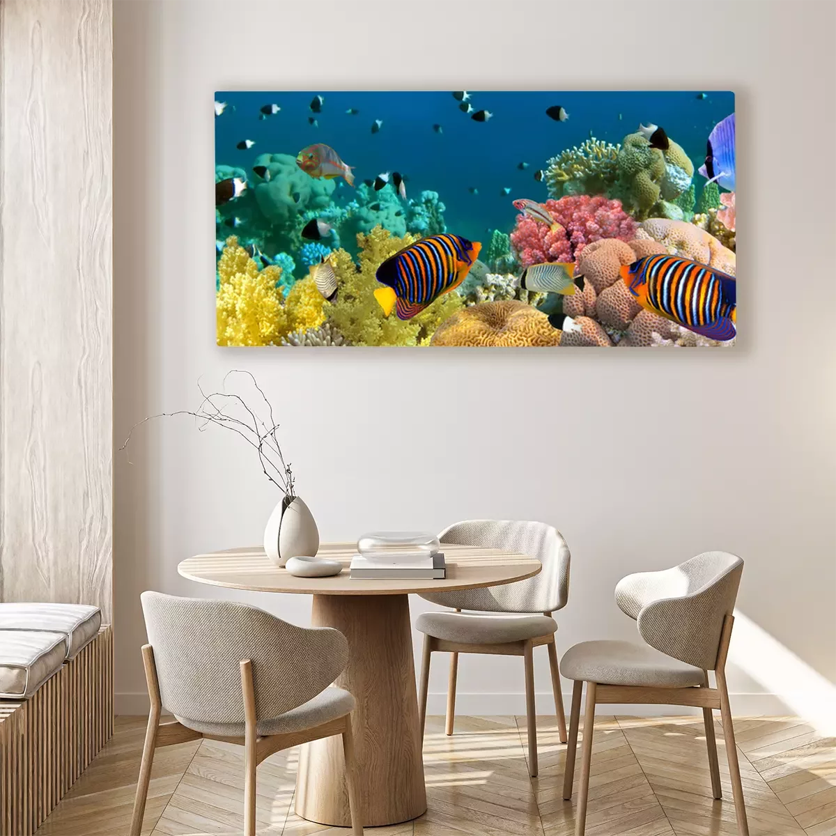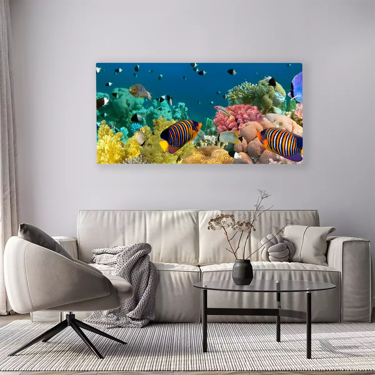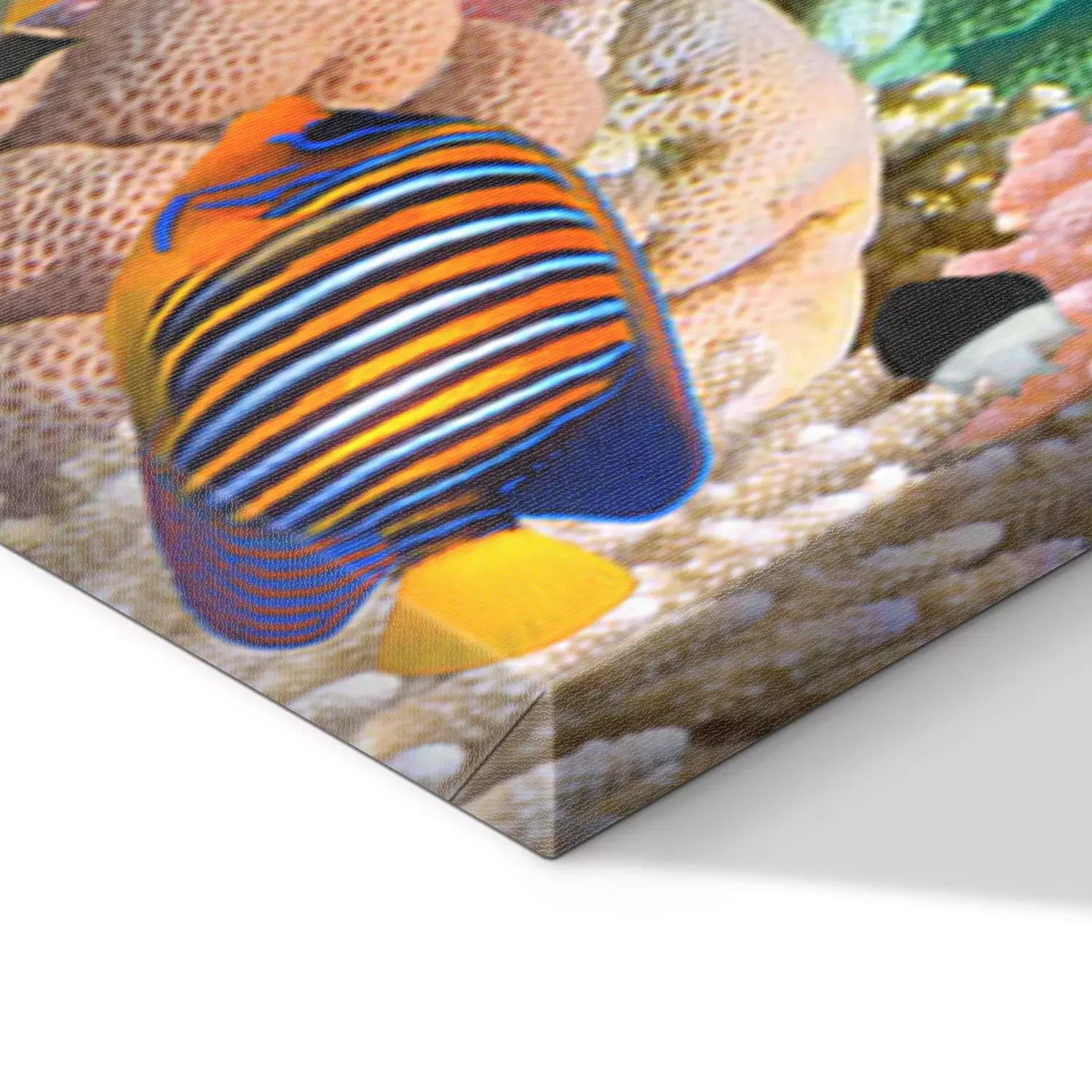 De print wordt aangebracht op hoogwaardig canvas dat op een schildersweefgetouw (spieraam) wordt gespannen. Omdat de print de zijranden bedekt, hoeft het ontwerp niet met een extra kader te worden omlijst. Wij raden ook composities aan die uit meerdere foto's bestaan en zo een coherente compositie vormen.