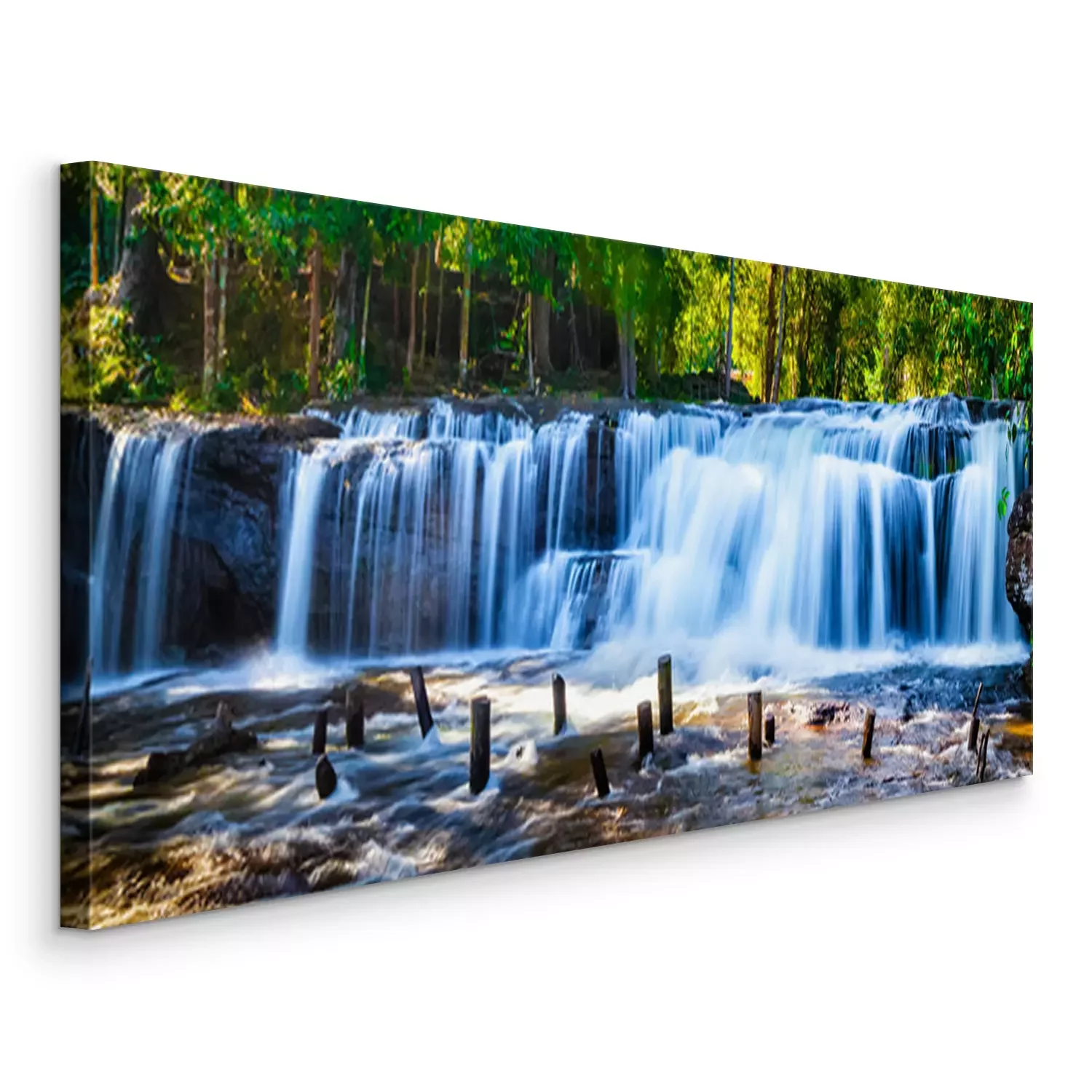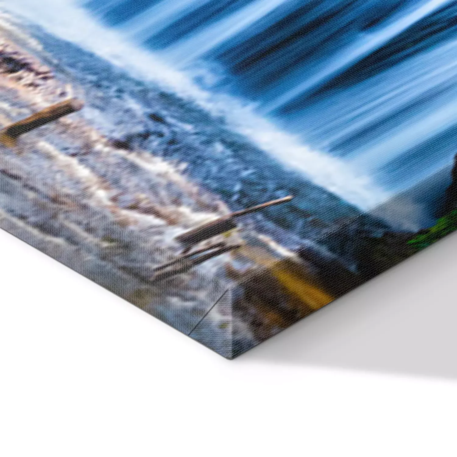 De print wordt aangebracht op hoogwaardig canvas dat op een schildersweefgetouw (spieraam) wordt gespannen. Omdat de print de zijranden bedekt, hoeft het ontwerp niet met een extra kader te worden omlijst. Wij raden ook composities aan die uit meerdere foto's bestaan en zo een coherente compositie vormen.
