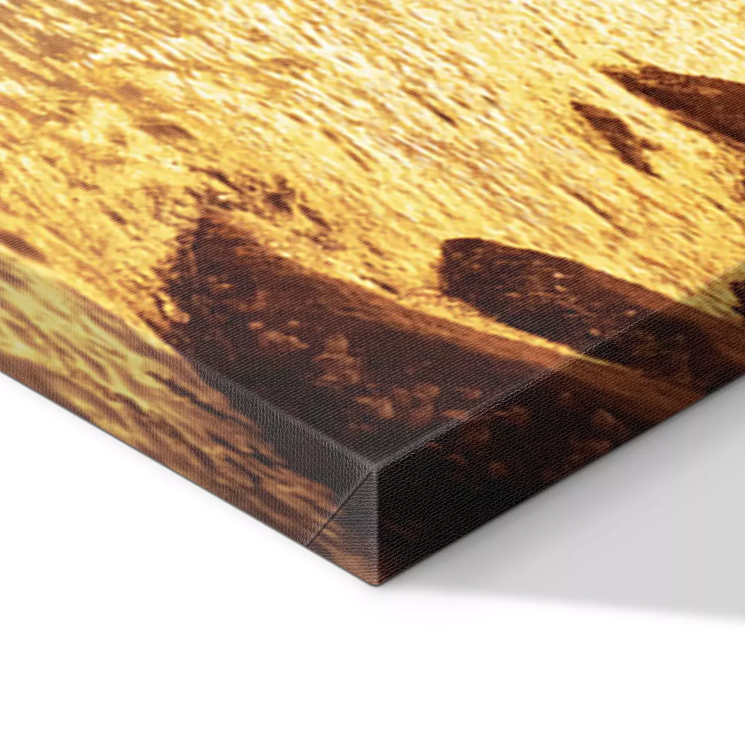 De print wordt aangebracht op hoogwaardig canvas dat op een schildersweefgetouw (spieraam) wordt gespannen. Omdat de print de zijranden bedekt, hoeft het ontwerp niet met een extra kader te worden omlijst. Wij raden ook composities aan die uit meerdere foto's bestaan en zo een coherente compositie vormen.